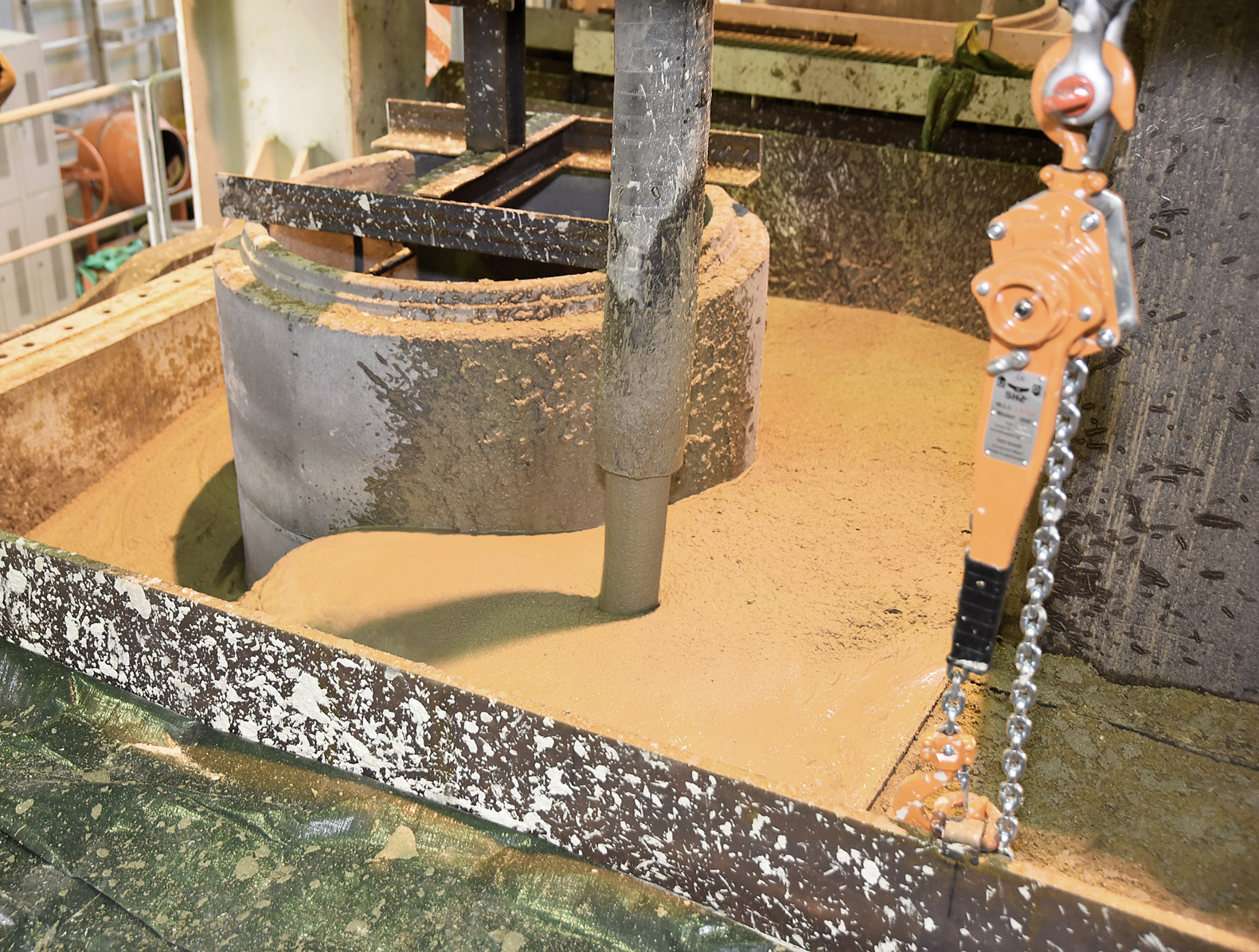 Schon während des Einbaus der Flüssigböden (ZFSV) begann das umfangreiche Prüfprogramm: Das Warentest-Team ermittelte unter anderem anhand des Ausbreitmaßes die Konsistenz der Flüssigböden, prüfte mit der Viskowaage die Scherfestigkeit, maß den pH-Wert, füllte die Behälter für den 3-Segment-Zylinderversuch – der zeigt, ob sich die Suspension mit der Zeit entmischt – und nahm Proben für die Würfeldruckprüfung, mit der nach sieben Tagen der E-Modul bestimmt wird.