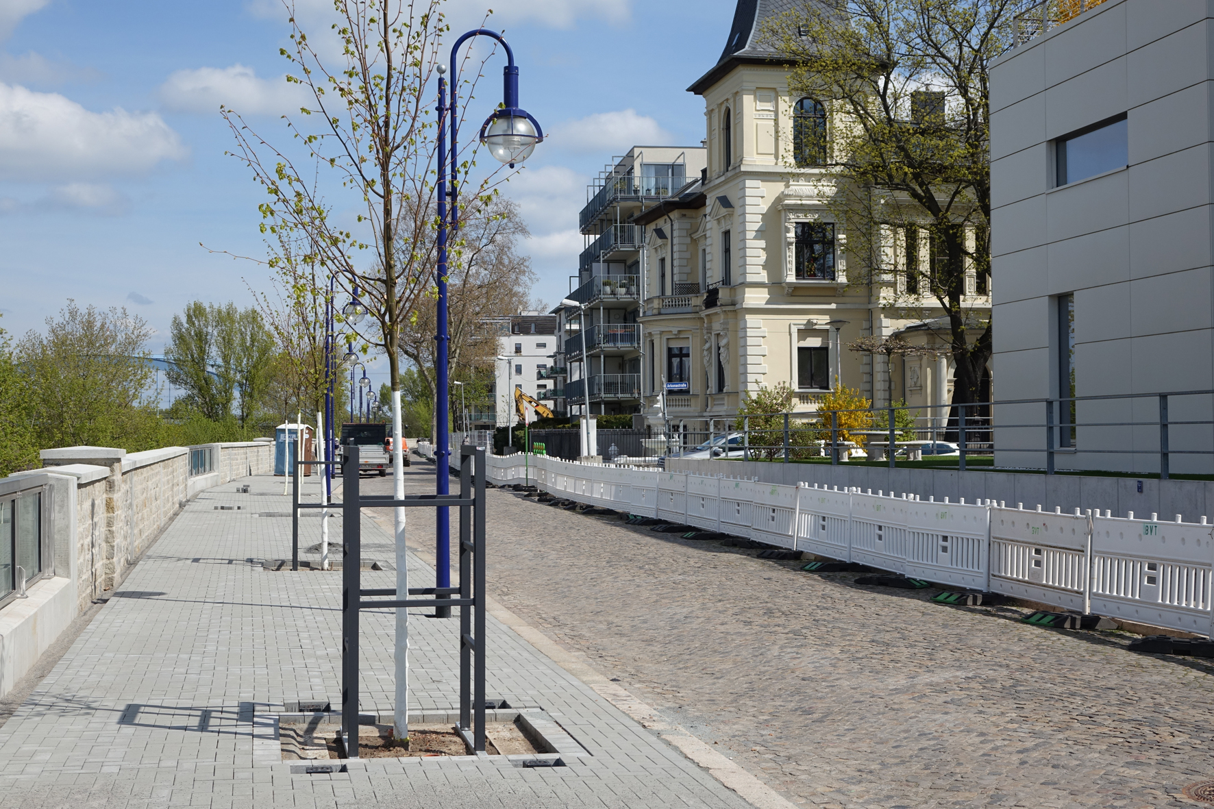 Mit Blick auf den Hochwasserschutz hat die Landeshauptstadt Magdeburg in der Zollstraße umfangreiche bauliche Maßnahmen realisiert. Im Rahmen der vom Ingenieurbüro Bayrhammer und Herden GmbH, IGS Ingenieure GmbH&Co.KG und GRÜN + FORM Büro für Freiraumplanung geplanten und bauüberwachten Arbeiten wurde am nahegelegenen Elbufer die alte Schutzmauer durch eine neue, acht Meter hohe Hochwasserschutzwand mit Natursteinverblendung ersetzt, für deren Bau der alte Baumbestand in der Zollstraße weichen musste.