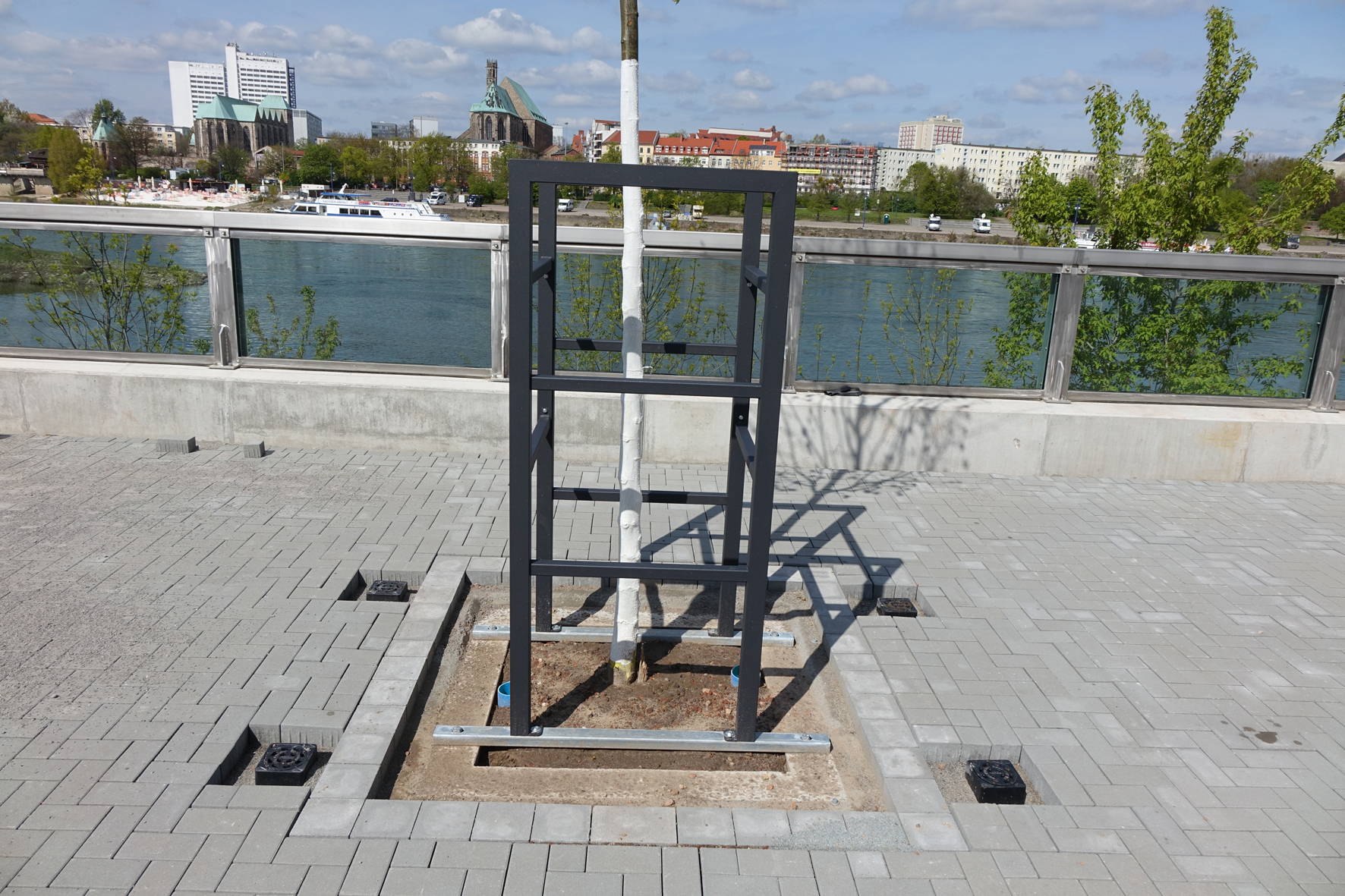 Bei der späteren Anpflanzung von 70 neuen Kaiserlinden baute die mit der Durchführung der Tiefbauarbeiten beauftragte HEIN-BAU GmbH, Magdeburg, Baumwurzelbelüfter und Baumbewässerungswinkel der Funke Kunststoffe GmbH ein.