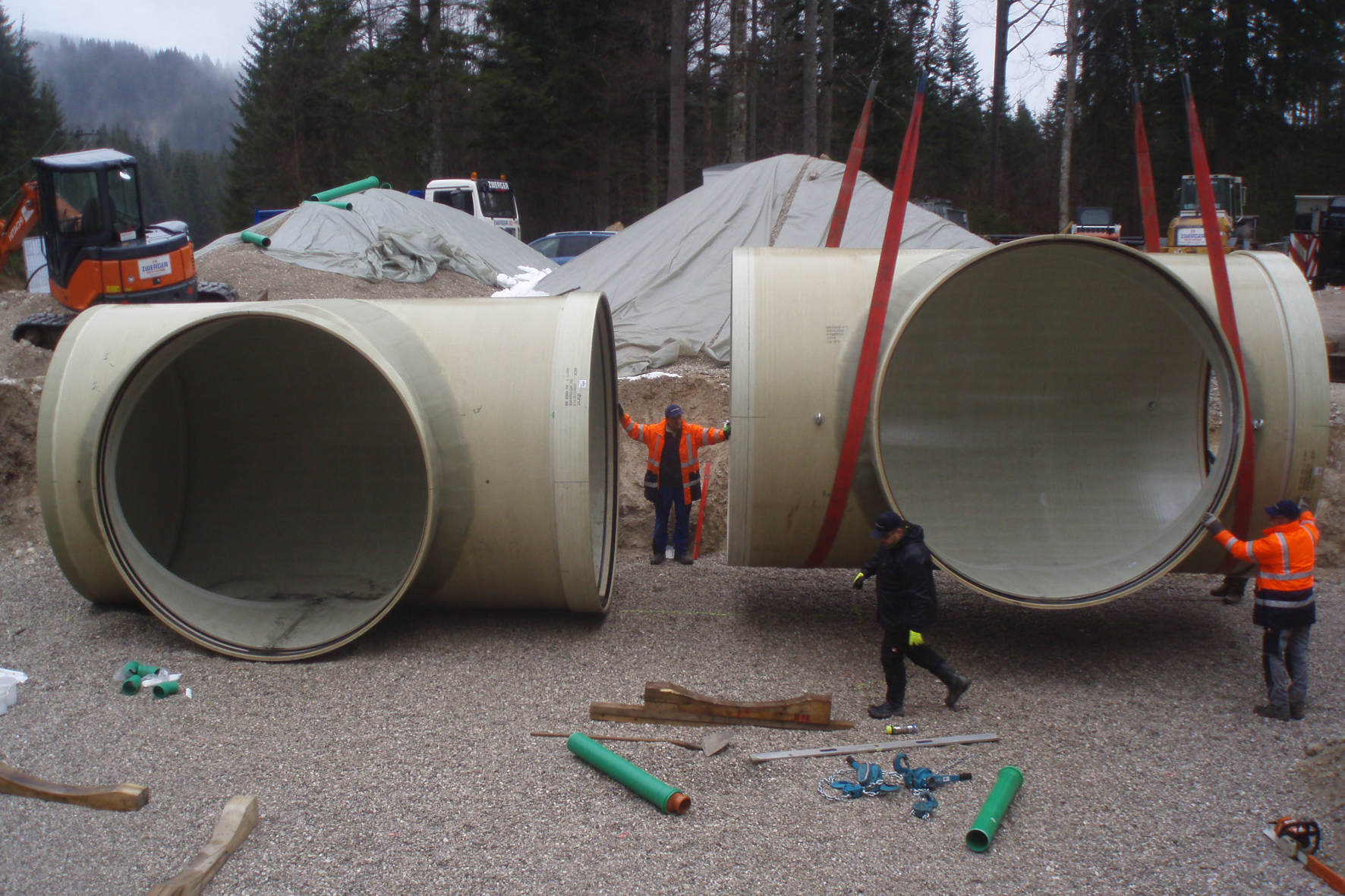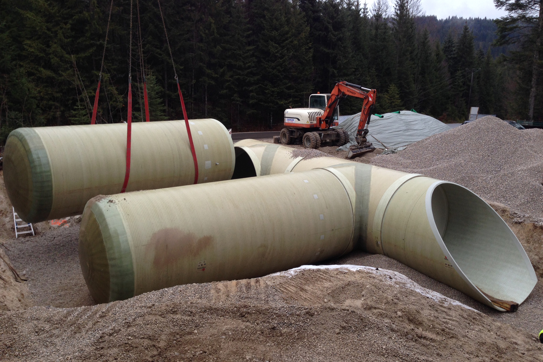 Stattdessen setzte man in Elmau auf das modular aufgebaute FLOWTITE GFK-Wasserspeichersystem von Amiantit. Gemäß der vorangegangenen Werkplanung wurde der neue Trinkwasser-Röhrenbehälter aus GFK-Wickelrohr DN 3000 vor Ort von der Jörg Zwerger Hoch- und Tiefbau KG aus fünf Bauteilen zusammengesetzt und nach der Montage frostsicher mit Erde überdeckt. Bittner: „Der Werkstoff bietet hervorragende hygienische Eigenschaften. Elemente aus GFK eignen sich gerade deshalb für trinkwasserrelevante Maßnahmen, da Mikroorganismen auf ihren glatten Oberflächen noch schlechter siedeln können als auf dem vergleichsweise rauen Beton.“