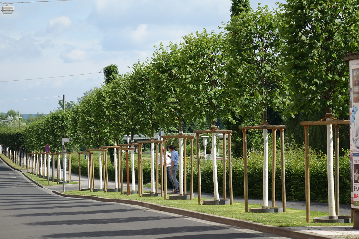 Im Rahmen der Maßnahme wurden junge Laubbäume zur Einfassung des Rosengartens und als Lückenschluss neu anpflanzt. Das Besondere: Um den Wuchs der Bäume zu unterstützen, und um die Stämme und Wurzeln vor Beschädigungen und Streusalz zu schützen, baute der für die Pflege des Straßenbegleitgrünes verantwortliche Servicebetrieb der Stadt neuartige Gießringe der Funke Kunststoffe GmbH ein. Die Gießringe sorgen dafür, dass das Wasser nicht unkontrolliert abläuft und dadurch nur das umliegende Erdreich und nicht die Baumwurzeln versorgt werden.
