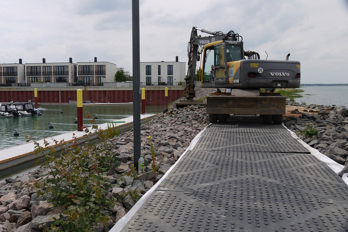Darüber hinaus kann die Kunststoffbaustraße auch im Eventbereich eingesetzt werden, beispielsweise als Grundfläche für einen Parkplatz oder als Fußweg. Mit einem speziellem Geotextil unterlegt schützen die Elemente sensible Oberflächen wie Natur- oder Betonsteinpflaster.