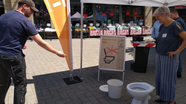 Der Wupperverband und die Technischen Betriebe Remscheid (TBR) hatten für den Tag der Daseinsvorsorge die Aktion „Dein Klo sagt No!“ initiiert. Auch die Technischen Betriebe Solingen sowie WSW Energie & Wasser AG in Wuppertal und die Technischen Werke Burscheid waren mit an Bord.