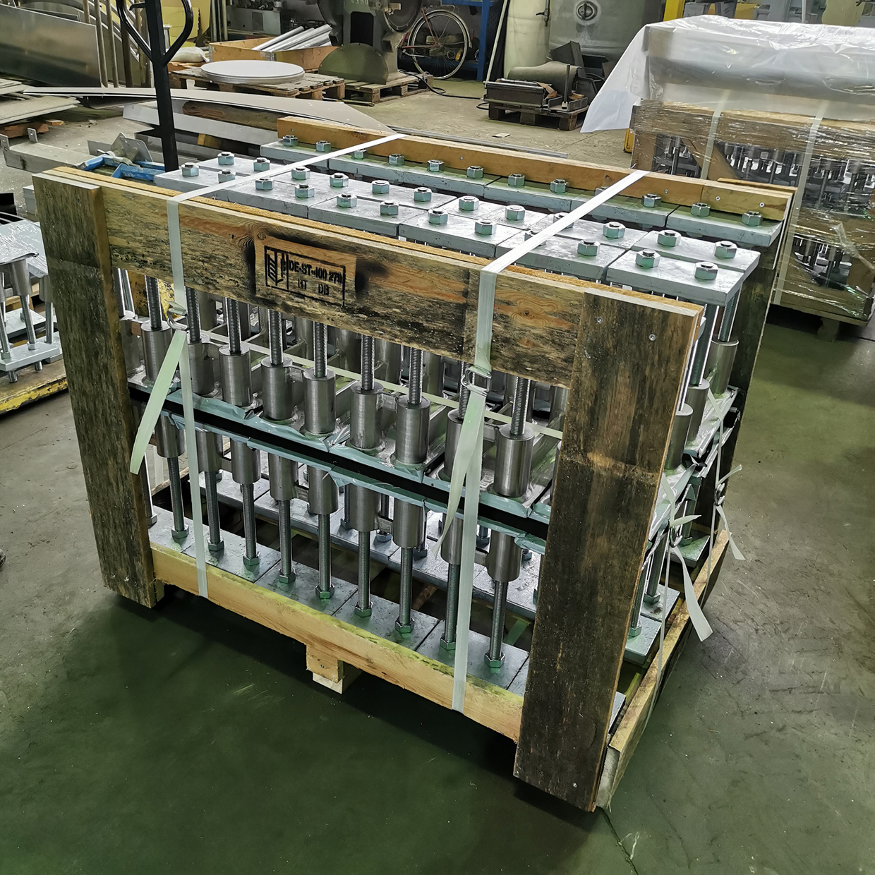 Neben den Dammbalken sind für die Konstruktion Ankerplatten und Stützen erforderlich: Die Ankerplatten aus Edelstahl werden für die Gründung in Beton eingegossen. Mittels Schraubverbindungen lassen sich die Stützen hieran befestigen. Nun können die Dammbalken eingestapelt und dank stufenlos verstellbarer Spanneinrichtungen gegen Auftrieb gesichert werden. Funktion der Stützen ist es, die durch die Wassermassen wirkenden Aufpralllasten auf die Gründung zu übertragen. Bei Bedarf stehen zusätzliche Rückabstützungen zur Verfügung. Für die Befestigung an bestehenden Bauwerken hat terra infrastructure eigens Wandanschlussstützen konzipiert. Außerdem sind Hochwasserschutztüren und -tore erhältlich.