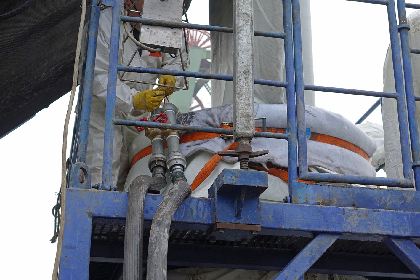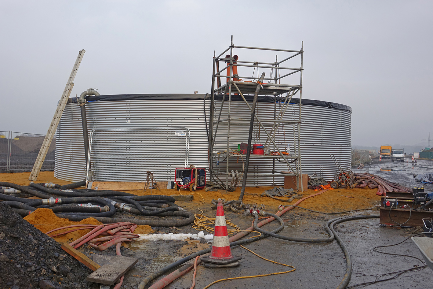 Um eine entsprechende Wassersäule mit dem erforderlichen hydrostatischen Druck aufbauen zu können, wurde dafür extra neben der Einbaustelle ein Wasserbecken mit einem Fassungsvermögen von ca. 400 m3 errichtet.