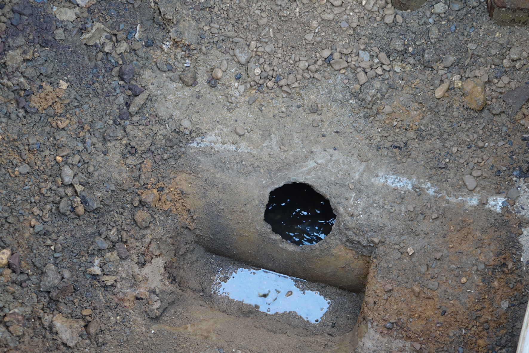 Üblicherweise fräst nach dessen Einzug ein Roboter die Hausanschlüsse auf, damit diese anschließend mittels Hutstutzen neu angebunden werden können. Der Zustand der unterirdischen Infrastruktur ließ das allerdings nicht zu, denn die überwiegende Zahl der Hausanschlussleitungen war damals von Hand hergestellt worden. Im Klartext: Bei der Verlegung des Sammlers hatte man einfach mit einem Hammer ein Loch in das Betonrohr geschlagen, um so eine Möglichkeit für die Anbindung der Hausanschlussrohre zu schaffen – eine Methode, deren Folgen heute in Form von teils extrem großen Ausbrüchen sichtbar werden.