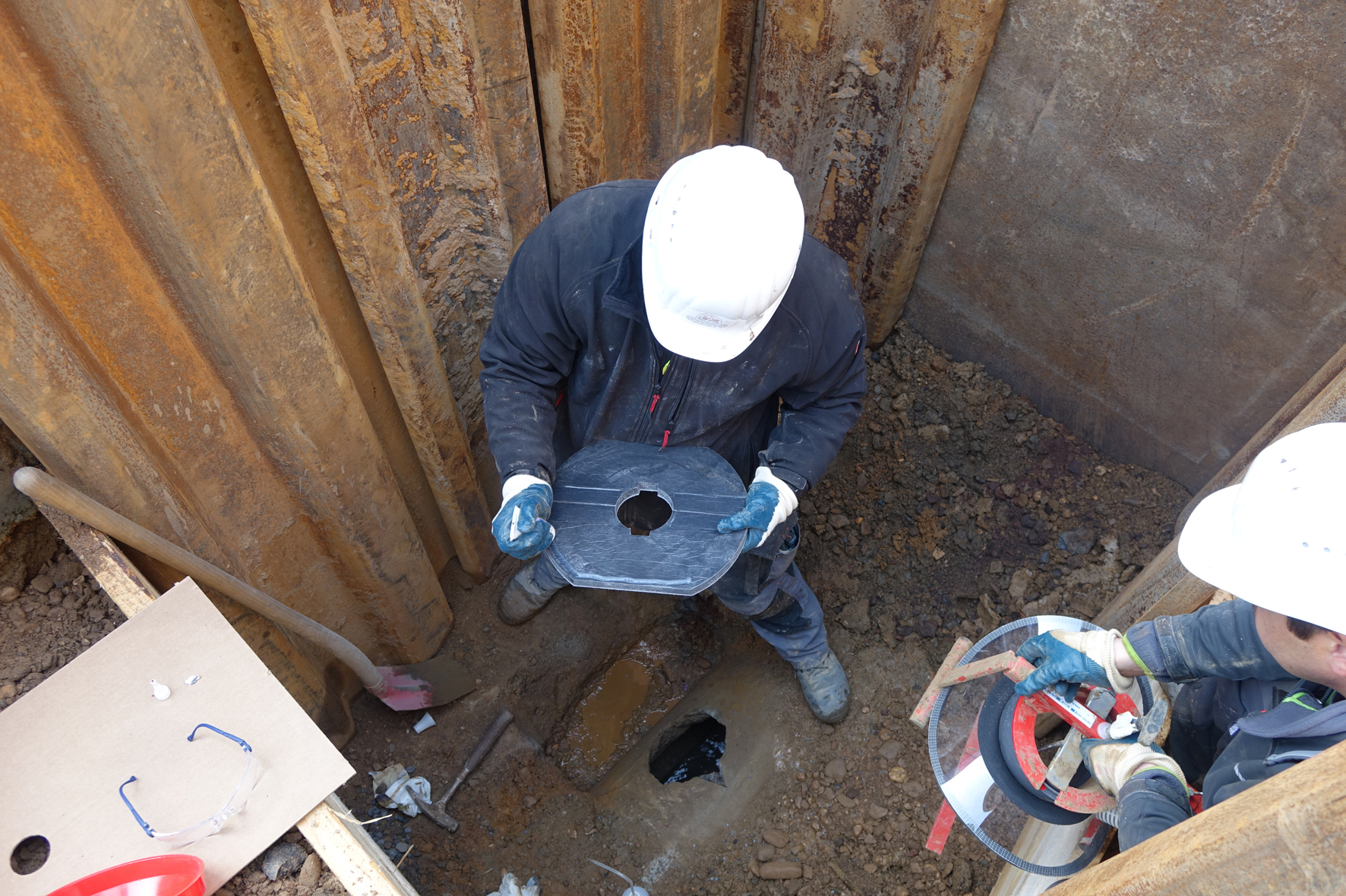 Polier Michael Schmidt stimmt zu und betont die einfache Handhabung des Bauteils: „Wenn man das Prinzip zwei-, dreimal in der Praxis angewendet hat, gestaltet sich der Einbau wirklich sehr einfach.“ Hilfreich sei die gute Einweisung durch den Hersteller gewesen: „Der Funke-Fachberater hat uns beim Einbau der ersten Bauteile mit Rat und Tat zur Seite gestanden, das hat uns die ersten Schritte noch leichter gemacht.“ Lob für das ausgeklügelte Bauteil aus der Hammer Ideenschmiede, das es jetzt auch in einer Variante DN/OD 200 gibt, kommt auch von Seiten des Planers: „Der Funke-Sanierungsstutzen ist eine hervorragende und praxisorientierte, weil schnell montierte Lösung für Ausbrüche bis zu 260 mm Durchmesser – unterm Strich wirklich eine ganz saubere Sache.“ Inzwischen gibt es den Sanierungsstutzen auch in einer Variante DN/OD 200; damit lassen sich Ausbrüche bis 310 mm sanieren.