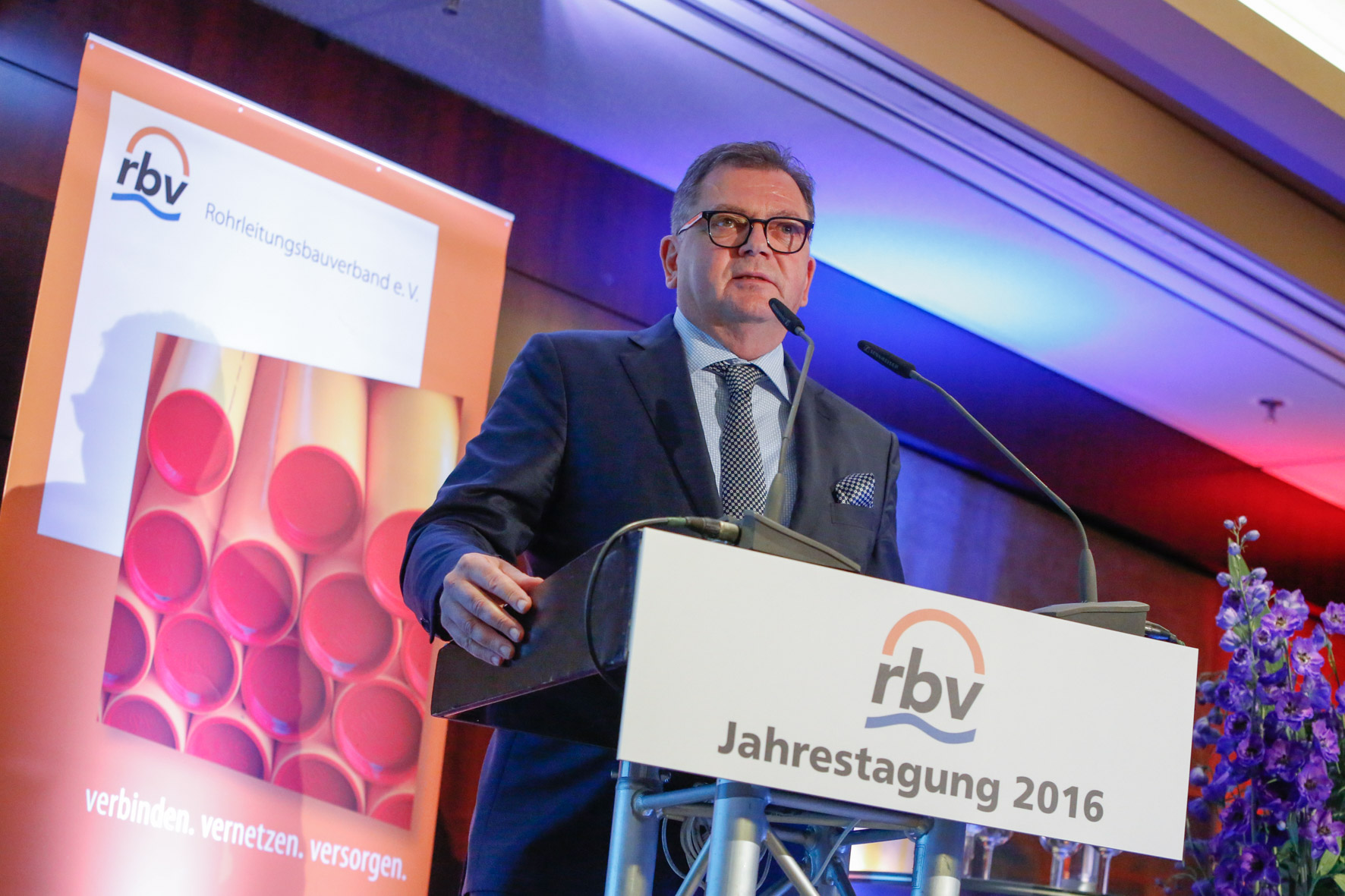 In seinem Bericht über die Arbeit des Technischen Lenkungskreises hob dessen Vorsitzender Dipl.-Ing. Hanjürgen Grabner zunächst die Bedeutung des Leitungsbaus als einem einflussreichen Teil der Bauwirtschaft hervor. Die Mitglieder des rbv seien sowohl im Bereich der technischen als auch der sozialen Infrastruktur tätig und stünden damit für wirtschaftliches Wachstum: „Investitionen in Infrastruktur zahlen sich volkswirtschaftlich aus“. Leider bestehe nach wie vor sowohl Nachhol- als auch Erweiterungs- und Ersatzbedarf. „Diese Themen müssen wir transportieren – auch nach Europa“, so Grabner, „und wir müssen den Finger nicht nur in eine Wunde legen, sondern in viele.“