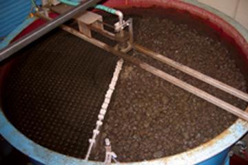 Um diese Lücke zu schließen und die Abwasser-Behandlung mit Tropfkörpern unter hohen Temperaturen zu untersuchen, errichteten die Wissenschaftler des ISWA mit Unterstützung des Bundesministeriums für Bildung und Forschung auf dem Gelände des Lehr- und Forschungsklärwerks der Uni Stuttgart einen halbtechnischen Tropfkörper in einer Klimakammer. Mit einer speziellen Klimatechnik beziehungsweise mit Hilfe von Wärmeaustauschern werden die Lufttemperatur bei 30 Grad und die Abwassertemperatur bei 25 Grad gehalten. Um den Vergleich verschiedener Füllmaterialen zu ermöglichen, experimentierten die Wissenschaftler mit Lavaschlacke sowie mit Kunststoffmaterial.