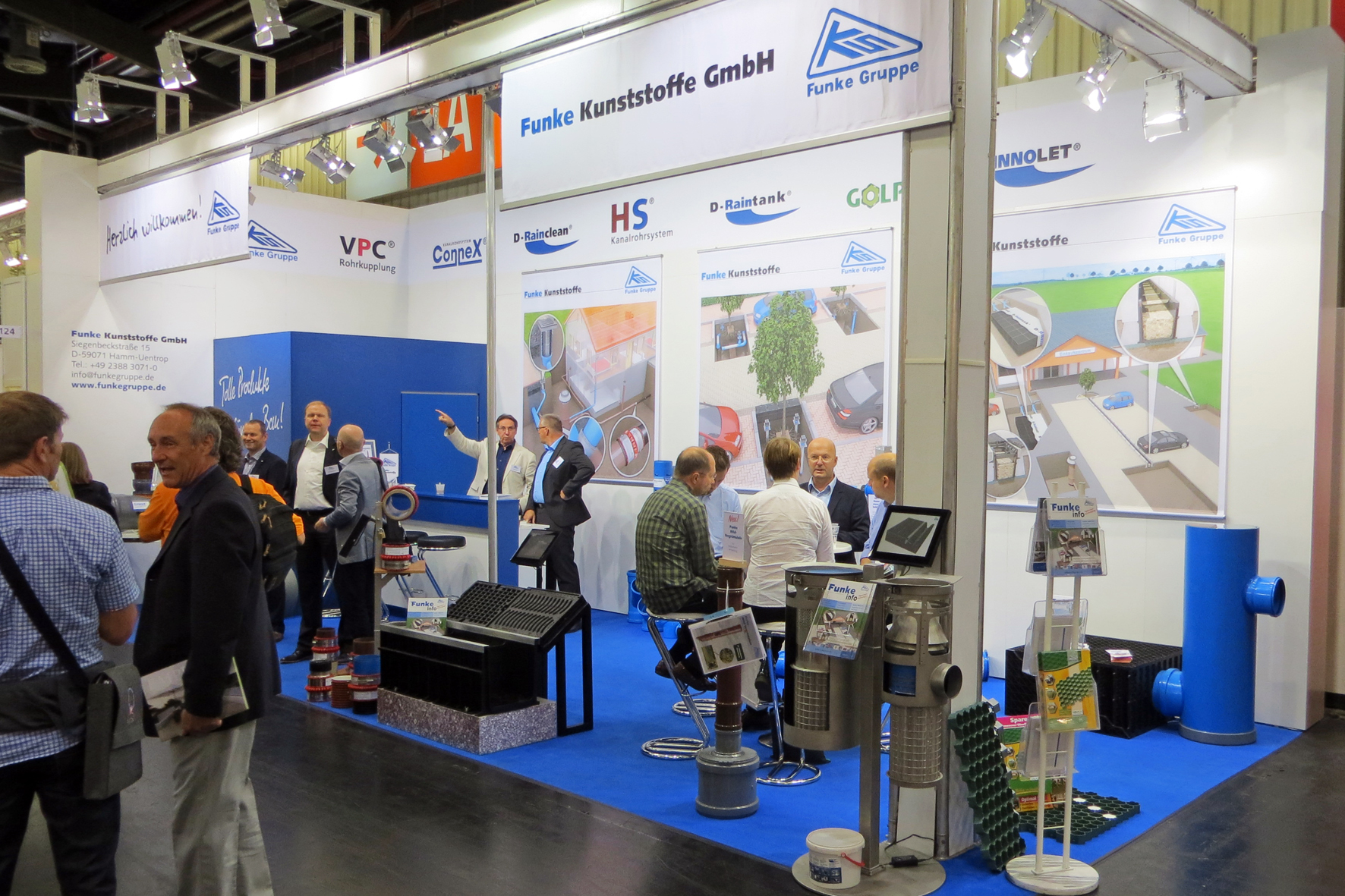 In den vergangenen Jahren hat die Hammer Ideenschmiede ihr Produktportfolio fortlaufend um Lösungen für den Landschaftsbau erweitert; zu den auf der GaLaBau 2014 präsentierten Highlights zählten der neuartige Funke BI-Adapter sowie die bewährten Belüftungs- und Bewässerungssysteme für Bäume, die GOLPLA Rasenplatte, die D-Rainclean Sickermulde und das INNOLET-System. Auch über die VPC-Rohrkupplung und das umfassende Funke-Sortiment rund um die Hausanschlusstechnik konnten sich die Standbesucher informieren. Für Funke besonders erfreulich: Neben vielen langjährigen Kunden des Unternehmens haben sich 2014 auch zahlreiche neue Interessenten aus den Bereichen Landschaftsplanung und -gartenbau für die Funke-Produkte gefunden.