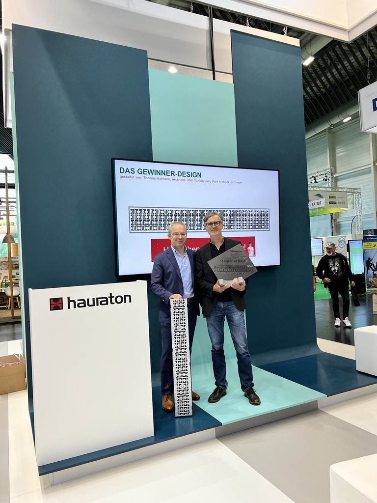 Die Affinität zum Design hat Hauraton mit der Ausschreibung seines Architektenwettbewerbs „Zeigen Sie Kante“ unterstrichen. Beim Messeauftakt wurde der Gewinner-Entwurf für eine neue Rinnenabdeckung gekürt. Der erste Platz ging an das Design von Architekt Thomas Haimann von B&V Architekten in Frankfurt am Main. „Es überzeugt durch seine klare Struktur und dekorative Wirkung“, hieß es in der Beurteilung der Jury. „Der Entwurf ist modern, besitzt aber auch eine Retro-Anmutung, so dass er sich bei älteren Gebäuden und Sanierungsmaßnahmen genauso einsetzen lässt wie als Akzent bei aktuellen Projekten.“ Das Gewinner-Design wird jetzt als neue Rinnenabdeckung ausgearbeitet und in das Sortiment von Hauraton aufgenommen.
