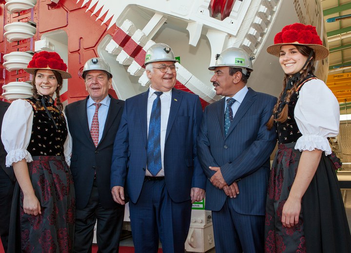 Die chronisch vom Stau geplagte Hauptstadt Doha soll ein komplett neues, sehr leistungsfähiges Metrosystem erhalten. Das Unternehmen Herrenknecht wurde hierfür mit der Lieferung von 15 High-Tech-Tunnelbohrmaschinen beauftragt. Der Transportminister HE Jassim Saif Ahmed Al Sulaiti nahm heute im Herrenknecht-Werk in Schwanau eine erste Tunnelbohrmaschine für dieses Großprojekt in Augenschein. Ein Gast während der Visite war auch der ehemalige Bundeskanzler Dr. h.c. Gerhard Schröder.