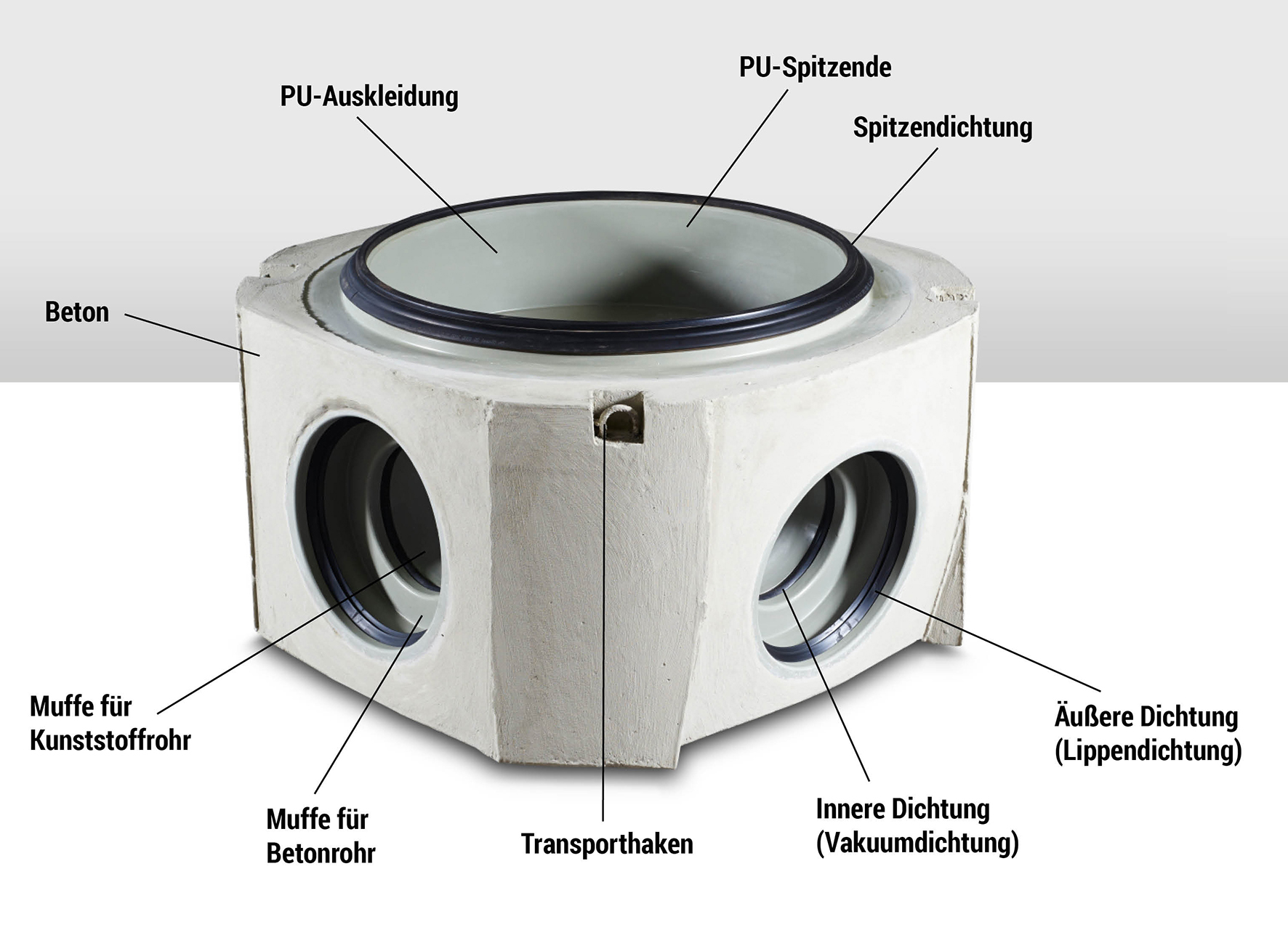 Dabei sorgt der Beton für eine extrem hohe Stabilität und Tragfähigkeit und das innen liegende Kunststoffrohr für eine ausgesprochene Korrosionsbeständigkeit, aufgrund derer FABEKUN bei Abwässern im pH-Bereich von pH 2 (sauer) bis pH 12 (basisch) eingesetzt werden kann.