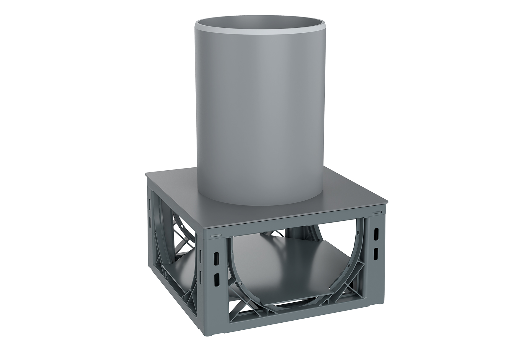 Die D-Raintank 3000 smallbox®-Elemente werden gebrauchsfertig auf die Baustelle geliefert. Sie bestehen aus einer Gitterplatte mit jeweils vier lastabtragenden Säulen. Die Konstruktion sorgt für eine optimale Kraftübertragung ins umliegende Erdreich.