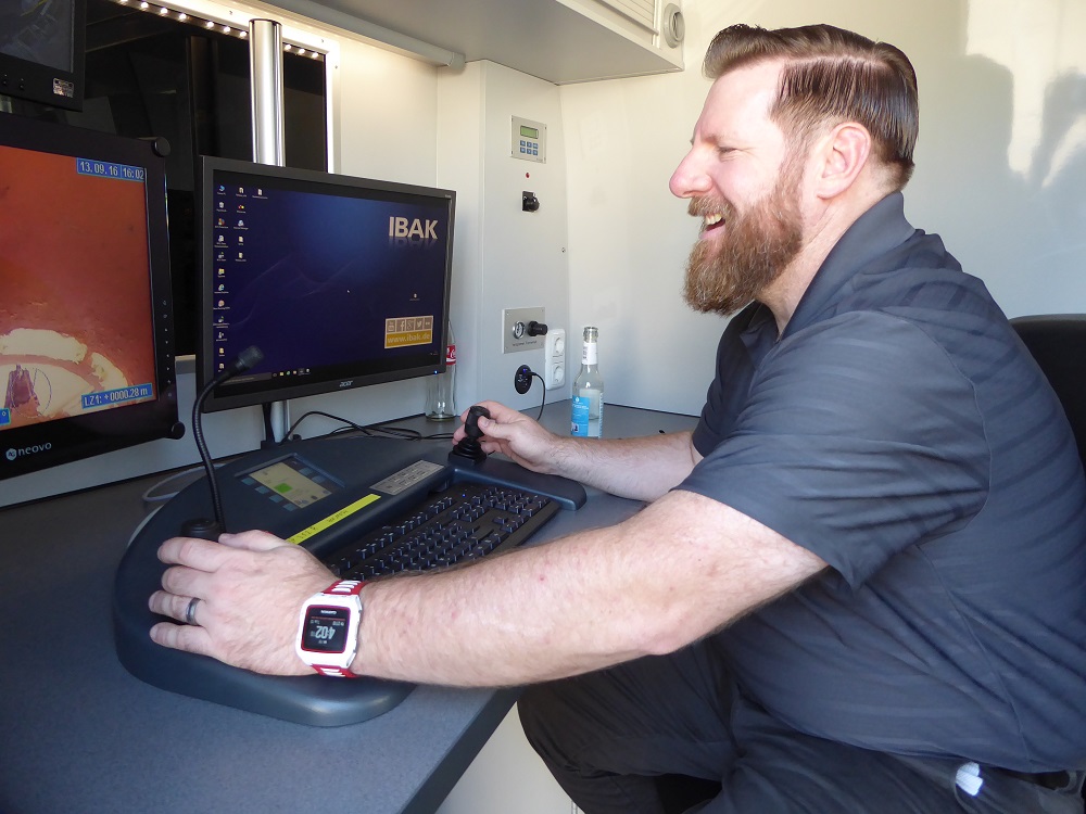 Nachmittags standen neue Produkte auf der Agenda. In der IBAK Auslieferungshalle testeten die Gäste die neue MiniLite und verfolgten Live-Demonstrationen von der neuen ORPHEUS mit Deformationsmessung. Zwei Highlights konnten jedoch sofort identifiziert werden: Die präzise Rohrverlaufsmessung mit 3D-GeoSense, die sowohl im Schiebe- als auch im Spülbetrieb in einem aufgebauten Rohrparcours demonstriert wurde; und das IBAK Robotics Vorführfahrzeug, an dem der neue Lateraldetektor vorgestellt wurde und Interessierte ihre Fräskünste mit dem MicroGator an einem Dummy-Rohr testen konnten.