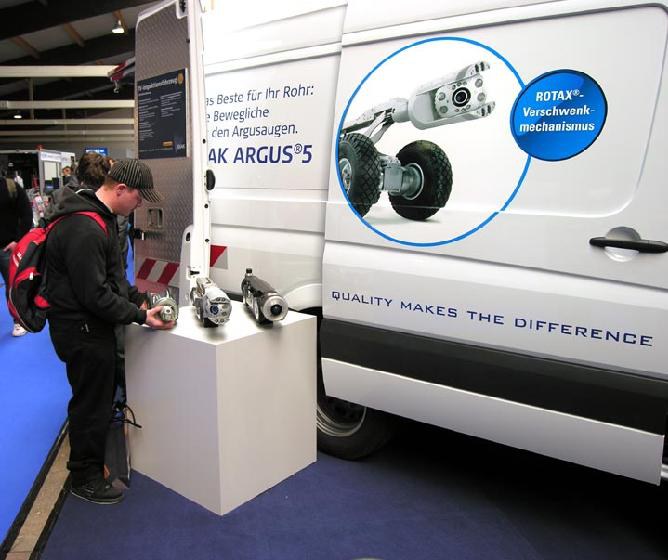 Vom 19. bis zum 21. März 2009 stand das Messe-Gelände der Kunst-Metropole Kassel ganz im Zeichen der Abwassertechnik. 160 Aussteller aus ganz Deutschland präsentierten ihre Produkte rund um die aktuelle Reinigungs-, Inspektions- und Sanierungstechnologie. Die Kieler Firma IBAK war mit einem rund 240 qm großen Stand vertreten, auf dem unter anderem zwei Kanalrohr-TVInspektionsfahrzeuge sowie ein kombiniertes Spül- und Inspektionsfahrzeug präsentiert wurden. Ein weiteres für Schachtuntersuchungen ausgebaute Inspektionsfahrzeug befand sich im großen Freigelände der Messe. IBAK-Vertriebsleiter Gerrit Knifka: "Besonders Vertreter der Kommunen aus ganz Deutschland ließen sich die Schachtkamera live vorführen und waren von der PANORAMO-SI-Technik begeistert".