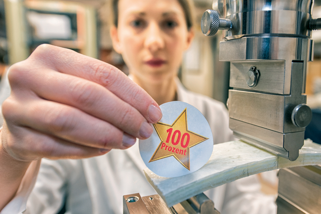 Bei der Prüfung der Biegezugfestigkeit wir die Belastung ermittelt, bei der ein Liner wegen zu hoher Spannung versagt. Hier liegt der Durchschnittswert bestandener Prüfungen leicht niedriger als im Vorjahr, jedoch weiterhin auf einem erfreulich hohen Niveau.