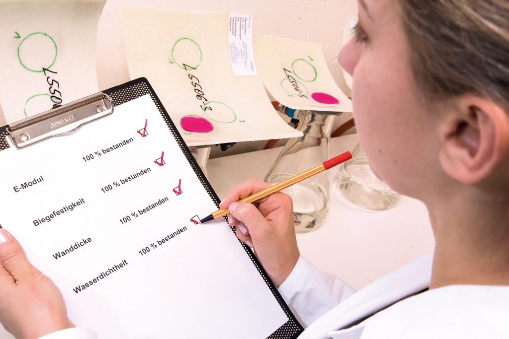 Bei Wanddicke und Wasser-Dichtheit verbesserten sich die Durchschnittswerte im Vergleich zum Vorjahr leicht. Bei Biegefestigkeit und E-Modul gaben die Mittelwerte minimal nach.