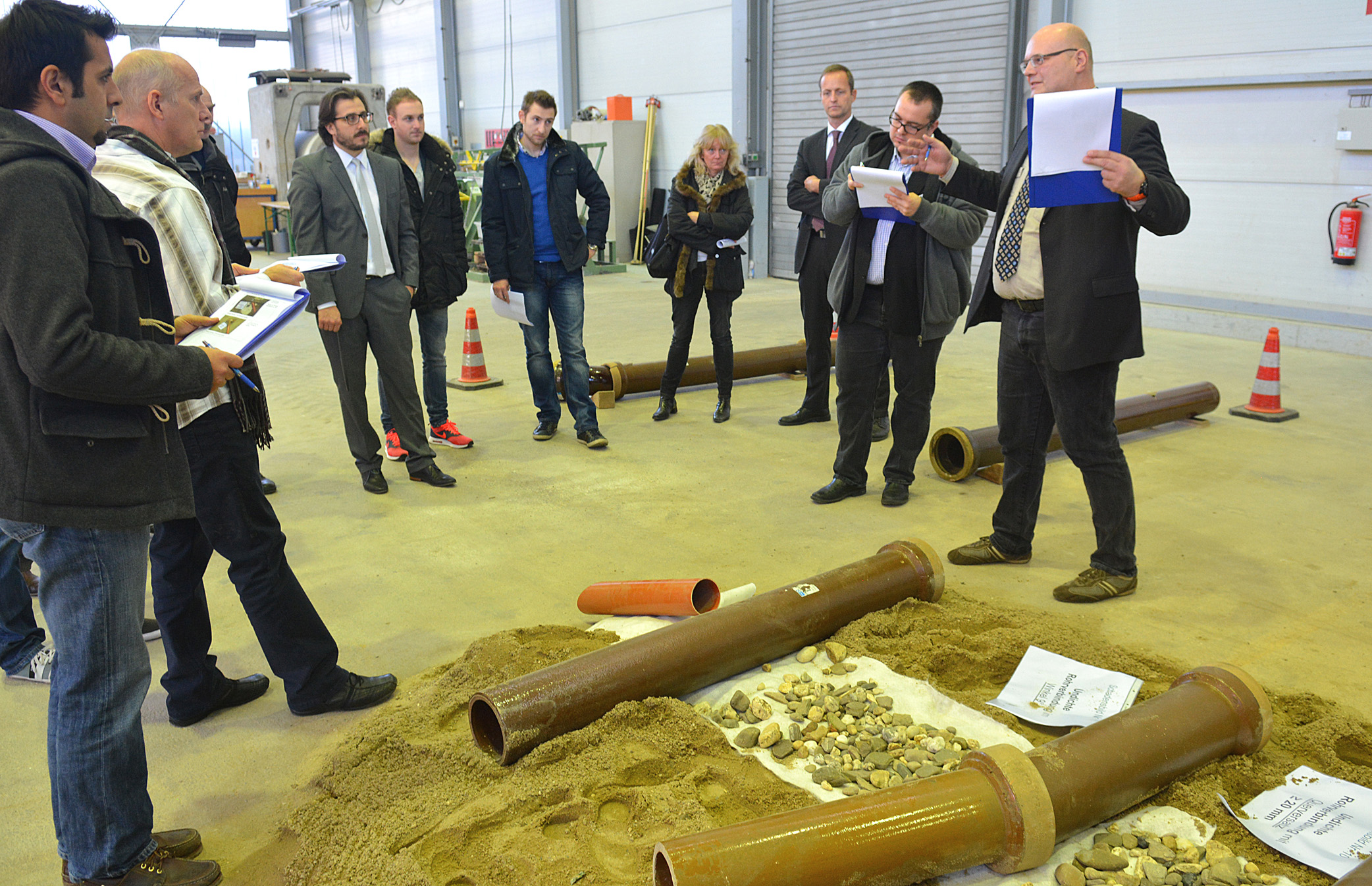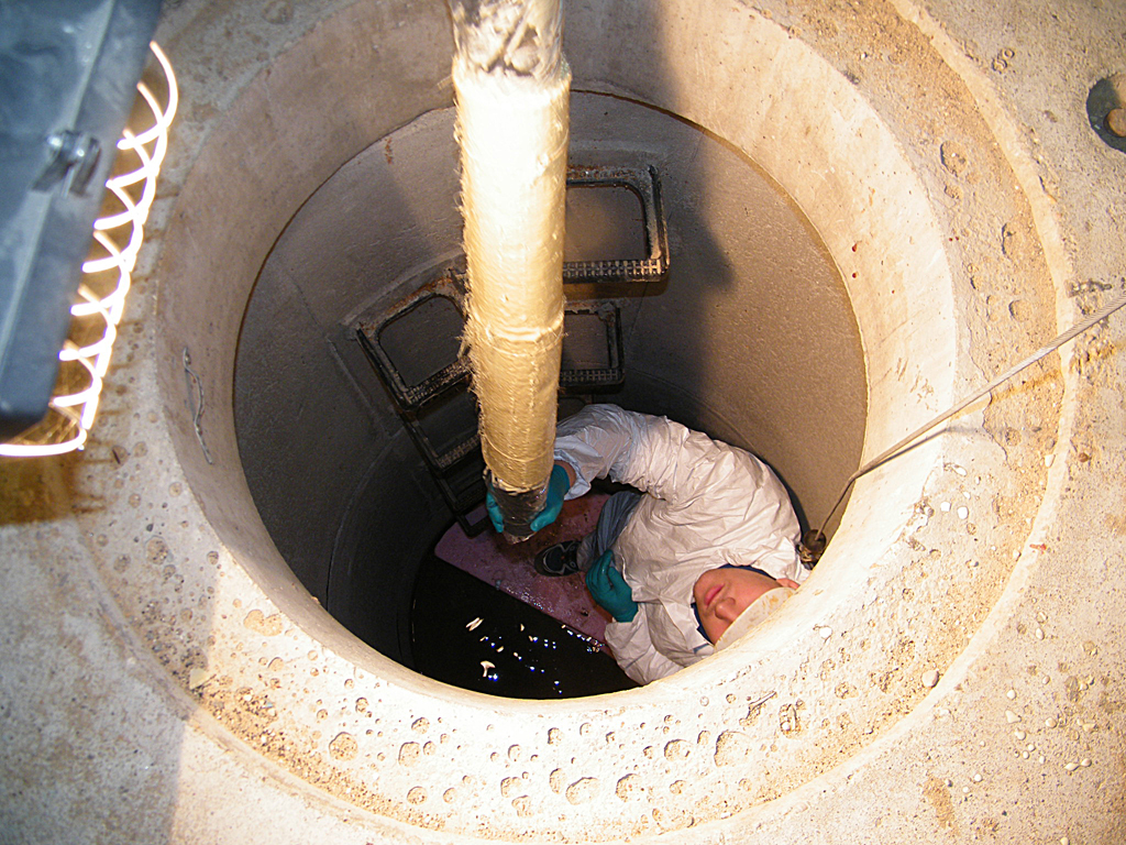 Es folgten Kurzzeit- und Langzeit-Außenwasserdruckprüfungen und HD-Reinigungen mit unterschiedlichen Drücken und Düsen, Rückstauereignisse, wechselnde Grundwasserstände, Reinigungen mit Rohrreinigungsspiralen – und immer wieder optische Inspektionen und Dichtheitsprüfungen. Schließlich maßen die Tester an den ausgebauten Leitungen die Querschnittsreduzierungen und prüften Haftzugfestigkeiten und Ringsteifigkeiten.
