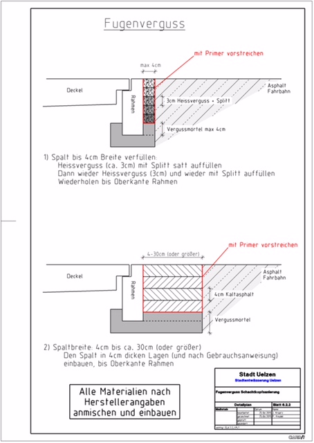 Die Konsequenzen aus den Erfahrungen erfreuen uns. Die Stadtentwässerung Uelzen ist seit 2015 dazu übergegangen, überwiegend ACO Schachtabdeckung Multitop Plus einzusetzen. D.h., dass die Neuentwicklung mit all ihren Produktvorteilen nun zum Einsatz kommt. Erstaunt aber zugleich erfreut sind wir als wir hören, dass die Abteilung eigene Einbauempfehlungen für den Rahmen bei Schachtkopfsanierungen ausgearbeitet hat, nach denen die ausführenden Mitarbeiter vor Ort arbeiten.