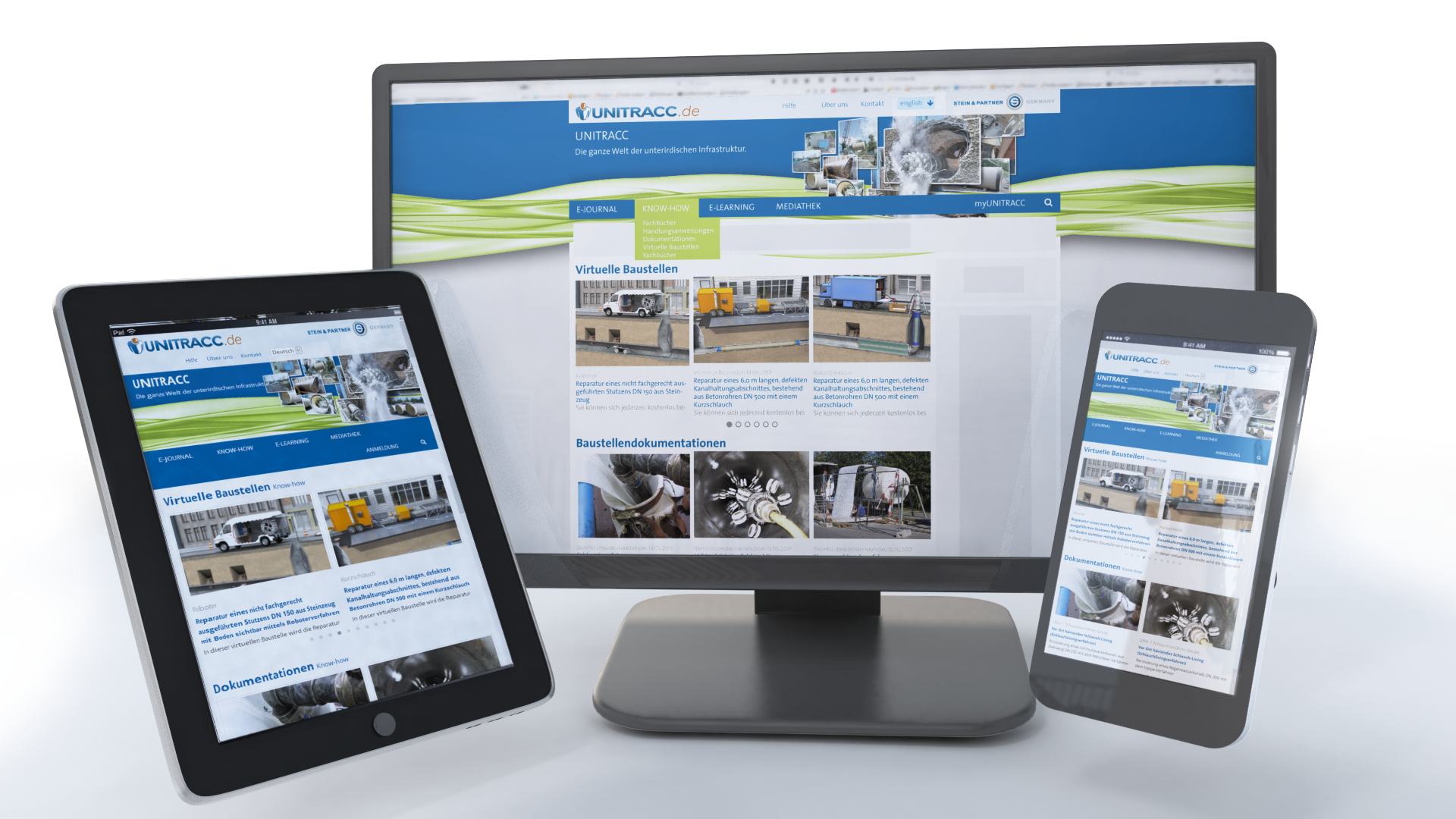 Mit dem neuen Slogan „Die ganze Welt der unterirdischen Infrastruktur.“ bzw. „The Entire World of Underground Infrastructure." und in einem modernen Design begrüßt UNITRACC von nun an alle Nutzer. "Unser bisheriges Layout erfüllte nicht mehr die Ansprüche, die mobile Endgeräte an modernes Web-Design stellen“, so Dr.-Ing. Robert Stein, Geschäftsführer der visaplan GmbH und der Prof. Dr.-Ing. Stein & Partner GmbH.