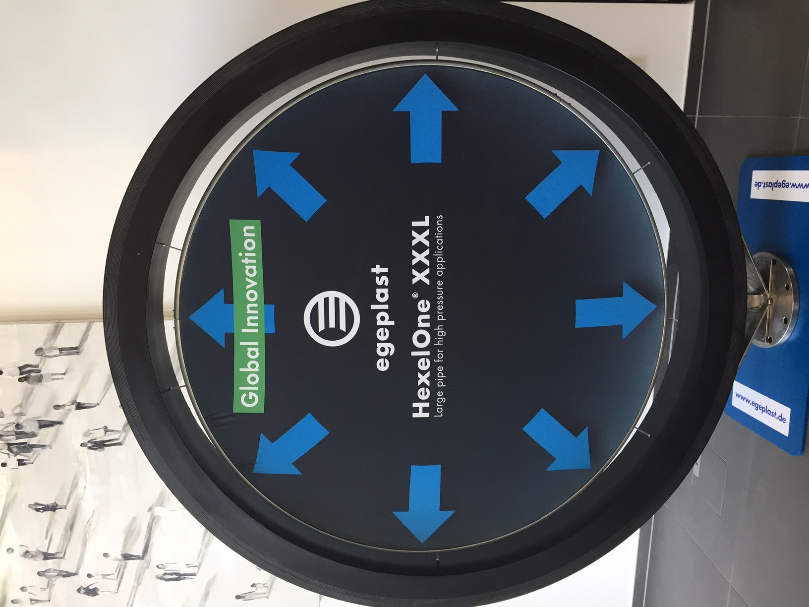 Das egeplast HexelOne® XXXL ist ein neu entwickeltes Großrohrsystem aus Polyethylen mit Durchmessern bis zu 2 m und für Betriebsdrücke bis zu 20 bar. Das intelligente Rohrsystem kommt besonders in der Wasserkraft und Pumpspeicher-Technik zum Einsatz. Durch grabenarme Verlegeverfahren wird der Eingriff in die sensible Landschaft auf ein Minimum reduziert. Neben der Produktinnovation wurde ein Fertigungsverfahren entwickelt, das Einsparungen von bis zu 50% an Material und Energie ermöglicht. Die Gesamtkosten für Bauprojekte verringern sich so erheblich. Eine verbesserte CO2-Bilanz schont die Umwelt.