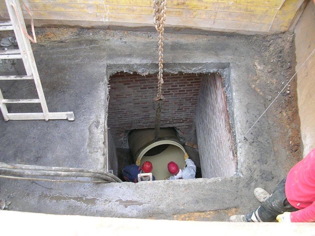 Durch die grabenlose Sanierung bei einer Gesamtlänge von 77m und der mittleren Sohltiefe von 7m wurden so bis zu 180 LKW Ladungen an Bodenaushub (1850m3) und eine ansonsten notwendige Grundwasserabsenkung vermieden, sowie Anwohner und Umwelt größtmöglich geschont. Die Sanierung wurde innerhalb von 6 Wochen (eigentlicher Rohreinzug in 2 Tagen) erfolgreich abgeschlossen.