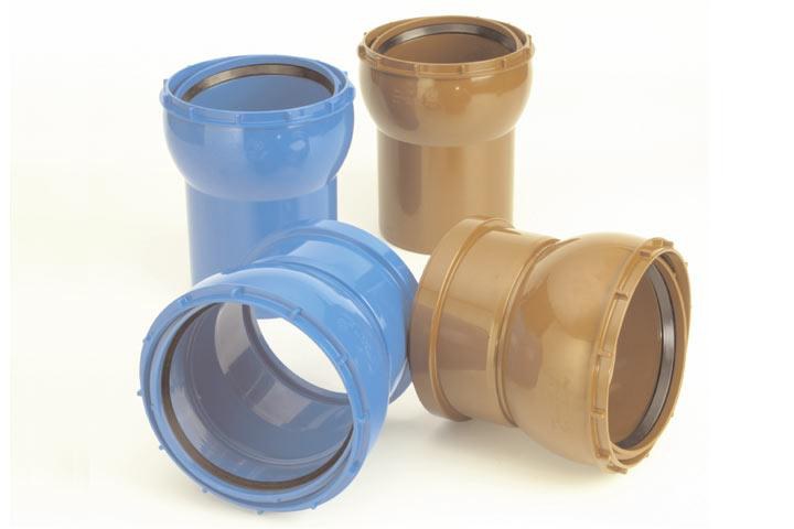 Besonders geeignet ist die VARIOmuffe deshalb für den Einsatz bei Sanierungsarbeiten. Das neue Formstück ist ebenso wie alle anderen Bauteile des HS®- Rohrsystems wandverstärkt und in den Farben blau (Regenwasser) und braun (Schmutzwasser) erhältlich. Das Außendurchmesser/Wanddickenverhältnis beträgt SDR 34.