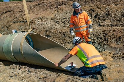 - GFK-Kreisprofile von DN 200 – DN 4.000 und Nenndrücken von 1 bar – 40 bar, für die Neuverlegung im offenen Graben oder die grabenlose „Rohr in Rohr“ Sanierung