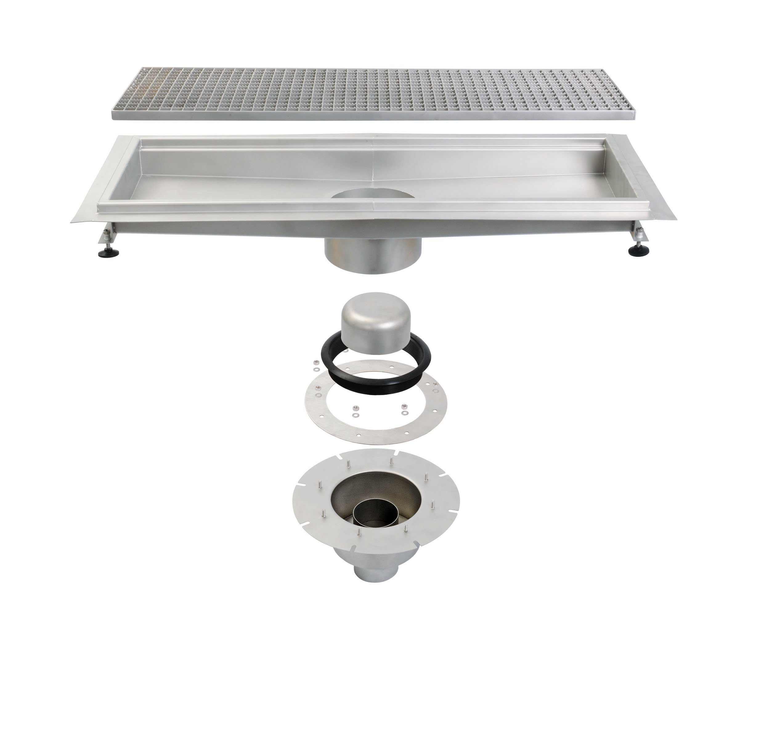 Für den Schwerlastbereich lieferte die Firma Richard Brink Entwässerungsrinnen des Typs Stabile Magna, die einer Belastung von 40 t standhalten. Als Abdeckungen dienen 3 mm starke Edelstahl-Roste, die durch ihre kleinen, kreisrund ausgestanzten Dränage-Lochungen das Hängenbleiben mit dünnen Schuhabsätzen verhindern. Die Kundensicherheit und -zufriedenheit sei schließlich am wichtigsten, so Markus Gnüchtel.