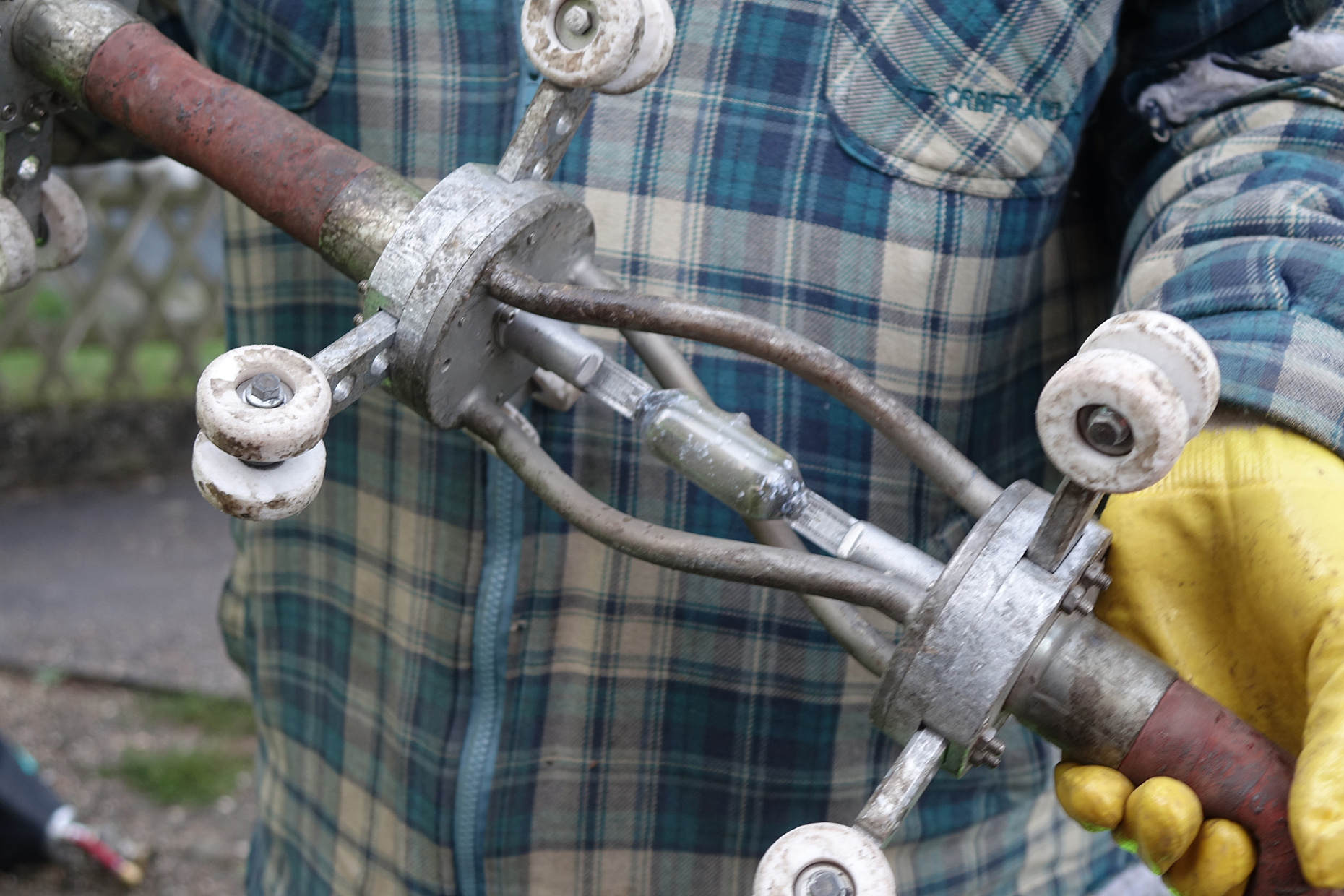 Die rund 4,3 m lange Kette war mit neun 500 Watt-UV-Lampen ausgestattet. Im nächsten Schritt wurde an beiden Enden des Schlauchliners eine Absperrblase eingebaut. Danach konnte der Liner im Inneren mit Druckluft beaufschlagt und aufgestellt werden. Dieser Vorgang erfolgte in 50 mbar-Schritten, bis ein maximaler Druck von 500 bis 600 mbar erreicht war und der Liner formschlüssig und faltenfrei an der Kanalwandung anlag.