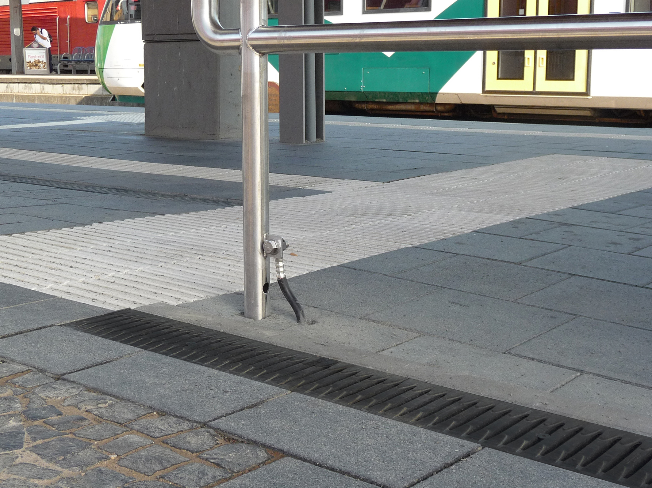 Zudem gestatten Recyfix Pro Rinnen den Einsatz in Bereichen, in denen besondere Sicherheitsanforderungen bestehen. Beim Bau von Bahnsteigen und Haltestellen beispielsweise müssen alle stromleitenden Bauteile entsprechend geerdet sein. Werden dagegen nichtleitende Elemente, wie die Recyfix Pro Rinnen, eingesetzt, kann auf der Baustelle viel Aufwand und Zeit gespart werden.