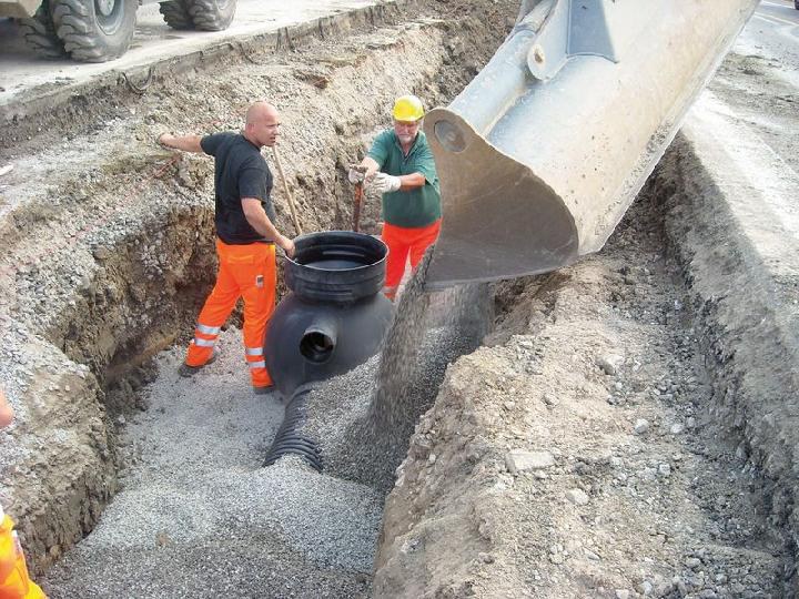 Der durch das geringe Gewicht von < 40 kg äußerst anwenderfreundliche Schacht mit dem Schachtdom DN 500 ermöglicht zusammen mit dem Schachtdom-Dichtelement den Einbau aller handelsüblicher Standardschachtabdeckungen (625mm). Für Huckepackleitungen steht der Aqua-traffic-control mit Huckepackanordnung zur Verfügung. Hier sind die Anschlüsse für die Sickerleitung bis DN 150 direkt in den Schacht integriert, so dass umständlich herzustellende, nachträgliche Schachtanschlüsse entfallen. Schachtbauwerke sind die am höchsten belasteten Bauteile eines Straßenentwässerungssystems, da sie teilweise im direkten Kontakt mit den auftretenden Verkehrslasten stehen. Die hohen Anforderungen an die langjährige Produktsicherheit bei dauerhafter Beanspruchung verlangen ein Schachtsystem, das die auftretenden Verkehrslasten direkt in den Untergrund ableitet und gleichzeitig so flexibel ist, dass es auf Setzungen reagieren kann. Daher sind alle monolithisch rotierten Schächte von FRÄNKISCHE für SLW 60 Belastung nachgewiesen und können direkt im Lastausbreitungsbereich von Straßen eingebaut werden.