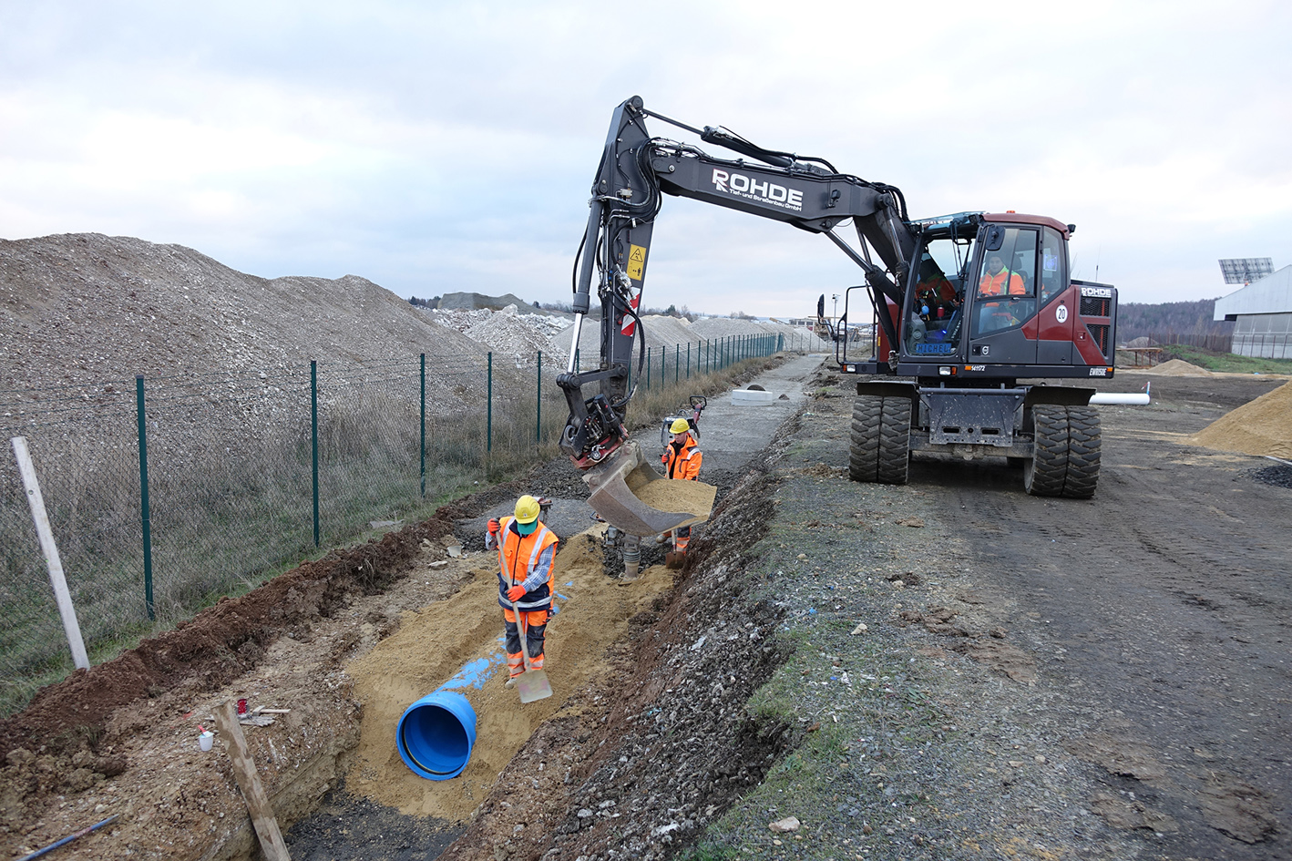 Die Oberflächenentwässerung des Bereichs ist in der Vergangenheit über einen aus Stahlbetonrohren errichteten Regenwasserkanal erfolgt. „Er verläuft in der Nennweite DN 700 westlich des sogenannten Nord-Süd-Betriebsweges, unterquert unterhalb der Müllumschlagstation (MUS) den aus Stahlbetonplatten aufgebauten Betriebsweg und führt dann als DN 1000-Leitung östlich des Betriebsweges weiter in südliche Richtung“, so Böttcher weiter. „Dann mündet er in einen Vorflutgraben, von wo das Niederschlagswasser über ein Grabensystem in die Schwalm geleitet wird.“