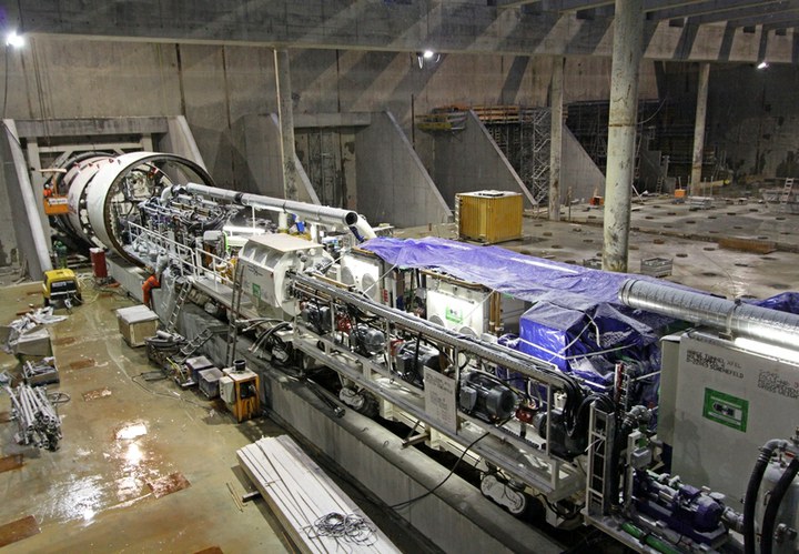 Der Vortrieb eines komplexen Tunnelsystems für die europäische Forschungsanlage European XFEL in der Metropolregion Hamburg konnte Anfang Juni mit der Einfahrt der Herrenknecht Tunnelbohrmaschine AMELI in ihren letzten Zielschacht erfolgreich abgeschlossen werden. Für die elf Tunnelabschnitte zwischen dem Hamburger Forschungszentrum DESY im Stadtteil Bahrenfeld und Schenefeld im Kreis Pinneberg mussten AMELI sowie ihre TBM-Schwester TULA mehrfach umgesetzt werden. Exakte Lasertechnik der Gesellschaft für Vermessungstechnik (VMT) hielt die beiden TBM auf den insgesamt 5,78 Kilometern millimetergenau auf Kurs.