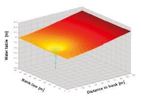 Ein spezielles Teilmodell dieses Entscheidungsunterstützungssystems (EUS) ist der Uferfiltrationssimulator (UFS). Das ursprünglich im Rahmen des NASRI-Projektes entwickelte und nun im Projekt TECHNEAU verfeinerte Modell enthält jetzt einen neuen Parameter, über den auch die minimale Verweilzeit des Wassers vom Ufer bis zum Brunnen berechnet werden kann. Grundsätzlich ermöglicht die UFS-Software eine Berechnung der Uferfiltratanteile auf Basis eines stationären horizontal-ebenen Grundwasserströmungsmodells.