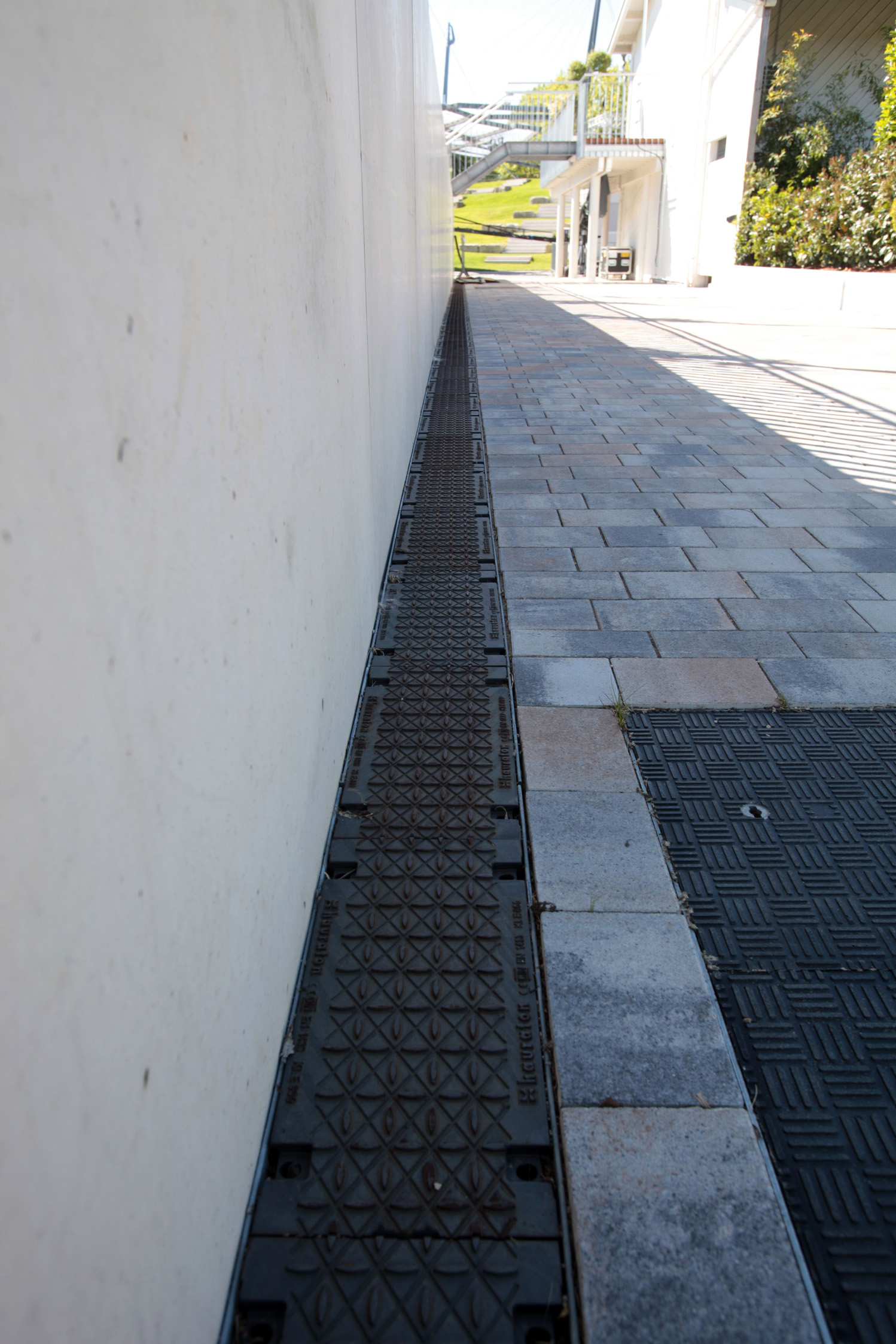 Weiterhin wurden im Rahmen des Bauvorhabens Entwässerungsrinnen Recyfix Pro samt Einlaufkästen mit Kunststoff-Gitterost eingebaut, ebenso Faserfix KS 100 Typ 01 Rinnen mit Gugi-Guss-Gitterrost und Recyfix Point 30/30 Punkteinläufe mit Gussrost, Belastungsklasse B125.