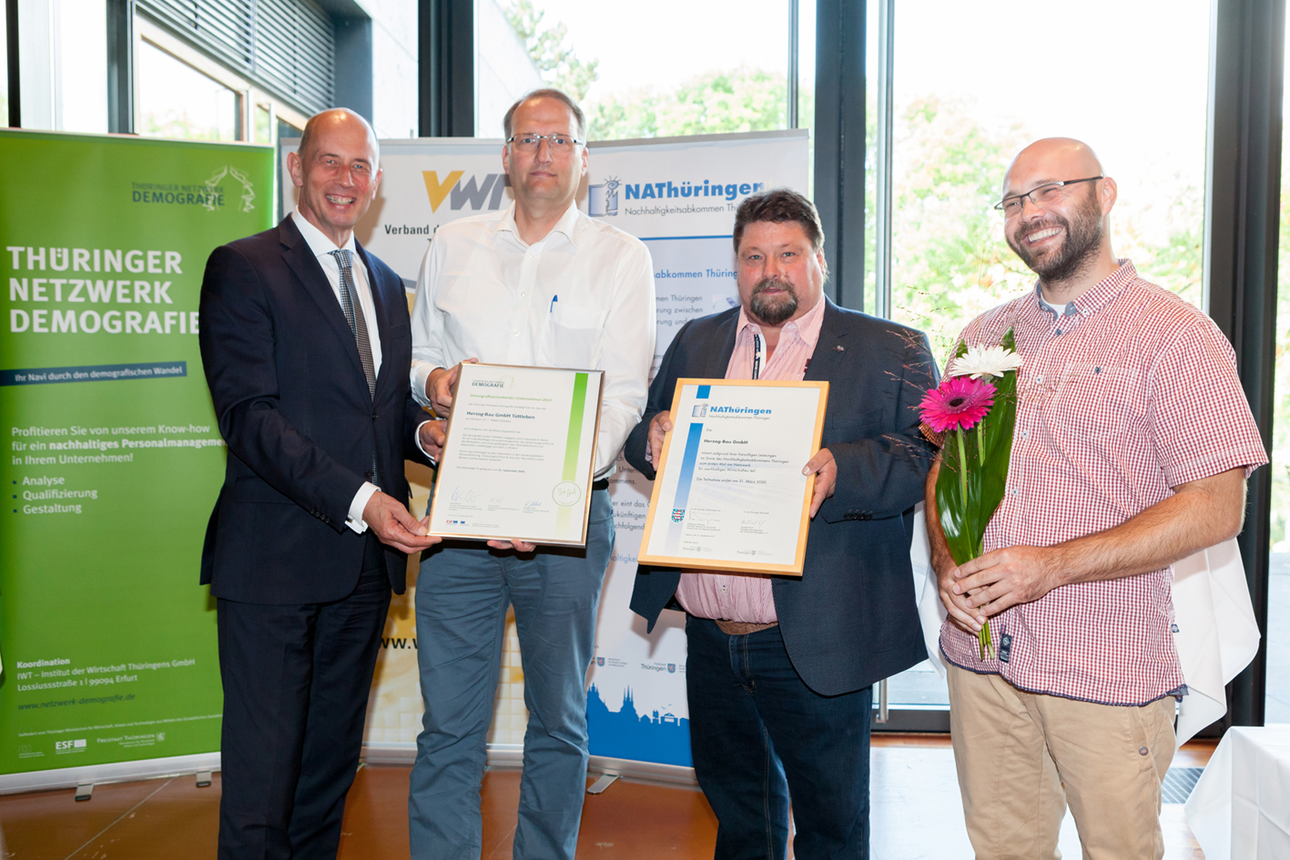 Das damit verbundene Gütesiegel bewertet Personalführung, Chancengleichheit und Diversität, Gesundheit sowie Wissen und Kompetenzen. Gleichzeitig erhielt das rbv-Mitgliedsunternehmen die Urkunde des Nachhaltigkeitsabkommens Thüringen, mit der Landesregierung und Wirtschaft nachhaltiges Wirtschaften auszeichnen.