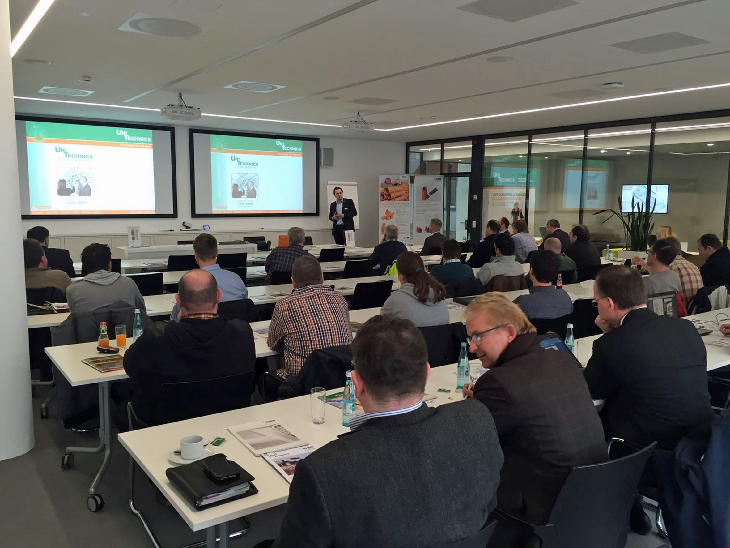 Qualifizierte Referenten der Firmen UNITECHNICS und REHAU sowie Vertreter kommunaler Abwasserverbände informierten die Teilnehmer der Veranstaltungsreihe darüber, wie sie diese Herausforderungen meistern können und welche Anforderungen an ein modernes Kanalnetzmanagement und technische Lösungen zu stellen sind. Exkursionen zu konkreten Baustellen gaben der Veranstaltung einen sehr praxisbezogenen Charakter und fanden großen Anklang.