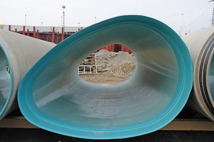 Auftraggeber und Planer sind mit dem Ergebnis der Sanierungsarbeiten sehr zufrieden. Die Montage der neuen Eiprofile hat reibungslos geklappt. Eingebaut wurden GFK-Rohre in der Standardlänge von 3 m. Lediglich dort, wo Radien ausgekleidet werden mussten, kamen Roh-re mit Längen von 1 m bzw. 1,50 m zum Einsatz. Zum schnellen Bauablauf hat nach Meinung der Beteiligten auch das von D&S modifizierte Montageverfahren beigetragen. Zum Beispiel durch eine verfeinerte Technik und modernste Werkzeuge wie dem Montagewagen, der vor Ort in kürzester Zeit an die Rahmenbedingungen der Baustelle angepasst werden kann.
