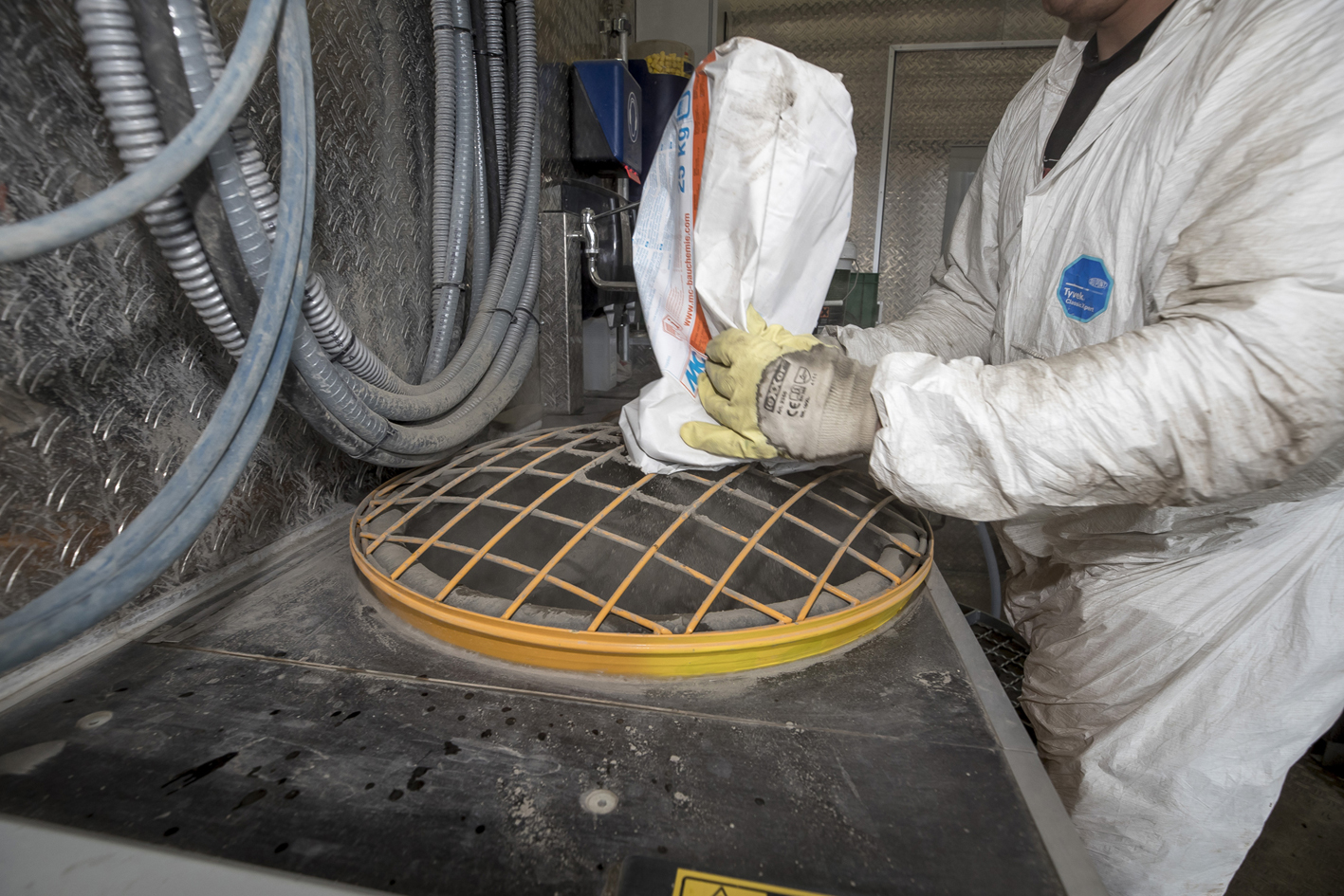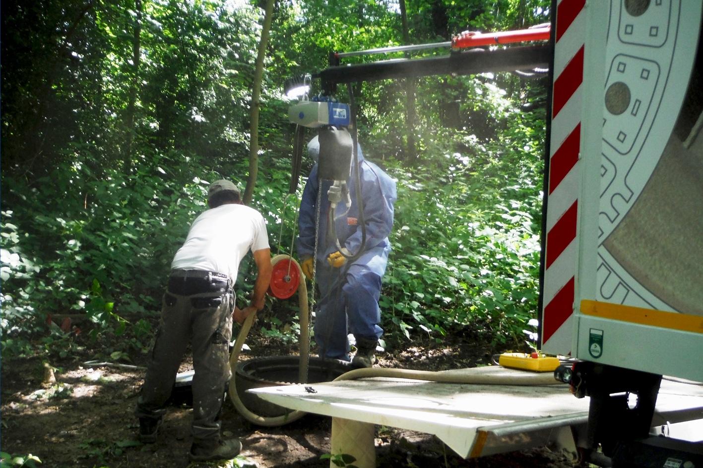 In einer ersten Phase fand im Juni 2017 eine fachmännische Untergrundvorbereitung der Schächte statt. Da die Innenwände der Schächte mit einer hochfesten, aber stark sulfathaltigen Oberflächenschicht verkrustet waren, die sich als extrem schwer ablösbar erwies, wurde statt der standardmäßig einzusetzenden MRT Blasting Unit, die Hochdruckwasserstrahlen mit 500 bar unter Granulatzugabe ermöglicht, auf eine noch effektivere Strahleinheit gesetzt. Mit der MRT Blaster HP Unit können ein Wasserdruck von bis zu 2.500 bar erzielt und schadhafte Altbeschichtungen oder mindertragfähigen Oberflächen abtragen werden. So erhielt man die erforderliche Oberflächentragfähigkeit für die nachfolgende Mörtelbeschichtung.