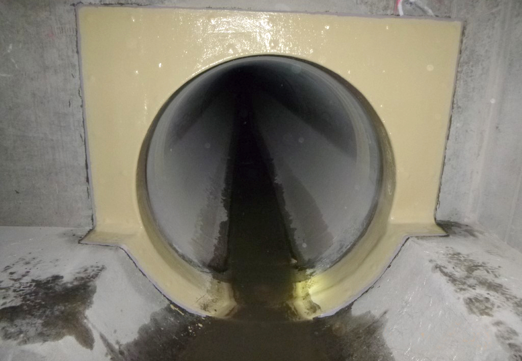 Das Ergebnis nach einer umfassenden Zustandserfassung war eine Kombination aus den drei Sanierungsverfahren Einzelrohr-Lining mit GFK-Rohren der Amiblu GmbH, Aufbringen einer betonschützenden Beschichtung mit ombran MHP-SP der MC-Bauchemie Müller GmbH & Co. KG sowie das Setzen von Edelstahl-Innenmanschetten. Die Bauausführung für diese anspruchsvolle Gesamtmaßnahme übernahm Aarsleff Rohrsanierung GmbH, NL Köln/Bonn. Dabei wurden die Arbeiten immer in kurzen Zeit-Slots nachts durchgeführt, um den Flugbetrieb nicht zu beeinträchtigen.