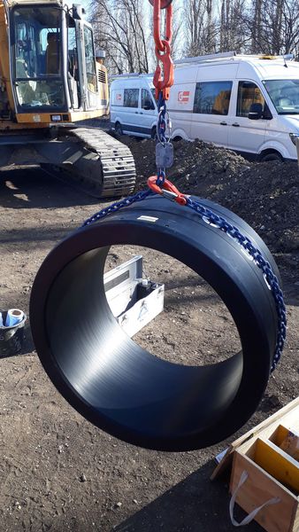 Besondere Bedeutung kam bei diesem Projekt den Formstücken zu. Bis dato konnten ausschließlich Rohre aus PE 100-RC sandbettfrei verlegt werden, da Formteile aus PE 100-RC nicht verfügbar waren. Anders war es bei diesem Projekt: Durch Bereitstellung eines Komplettsystems aus PE 100-RC inklusive exakt auf den Durchmesser abgestimmter Formteile durch die AGRU Kunststofftechnik GmbH, konnte die gesamte Rohrleitung einheitlich und ohne Sonderbehandlung der Formteile installiert werden.