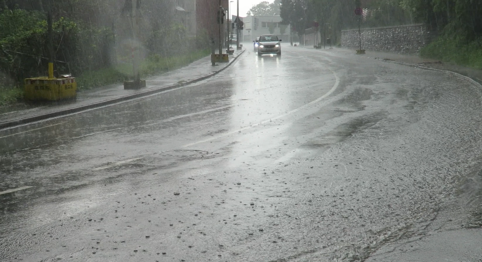 Ein Ergebnis der Untersuchungen war die realitätsnahe Menge Regenwasser, die bei einer bestimmten Regenintensität und Längs- und Quergefälle der Straße von einem Gully aufgenommen werden kann.