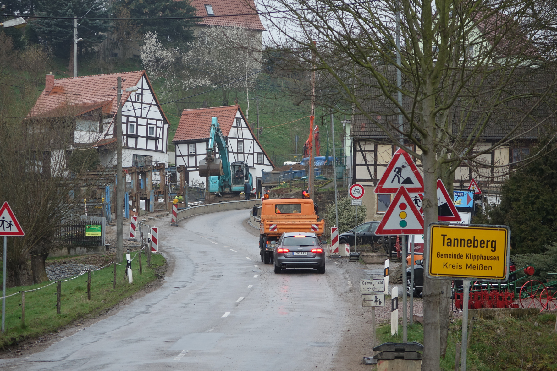 Errichtet worden war die Stützwand bereits im Jahr 1850. Ein Hochwasserereignis aus der jüngeren Vergangenheit, bei dem der Neutanneberger Dorfgraben über die Ufer getreten war, hatte auch die Bruchsteinwand so stark in Mitleidenschaft gezogen, dass sie die Anforderungen an die Verkehrssicherheit und Standsicherheit nicht mehr erfüllte: „Teile der an Privatgrundstücke angrenzenden Mauer waren durch mehrere Fahrbahneinbrüche im Randbereich stark gefährdet“, erläutert Dipl.-Ing. (FH) Frank Rahnfeld, Landesamt für Straßenbau und Verkehr. Im Zuge eines bereits Mitte Juni 2015 unter halbseitiger Verkehrsführung mit Ampelanlage begonnenen Ausbaus der Staatsstraße S 36 wurde deshalb jetzt auch die Stützwand erneuert.