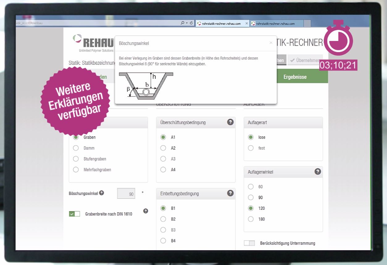 Weitere Informationen finden Interessierte auch unter www.rehau.de/rohrstatik-rechner
