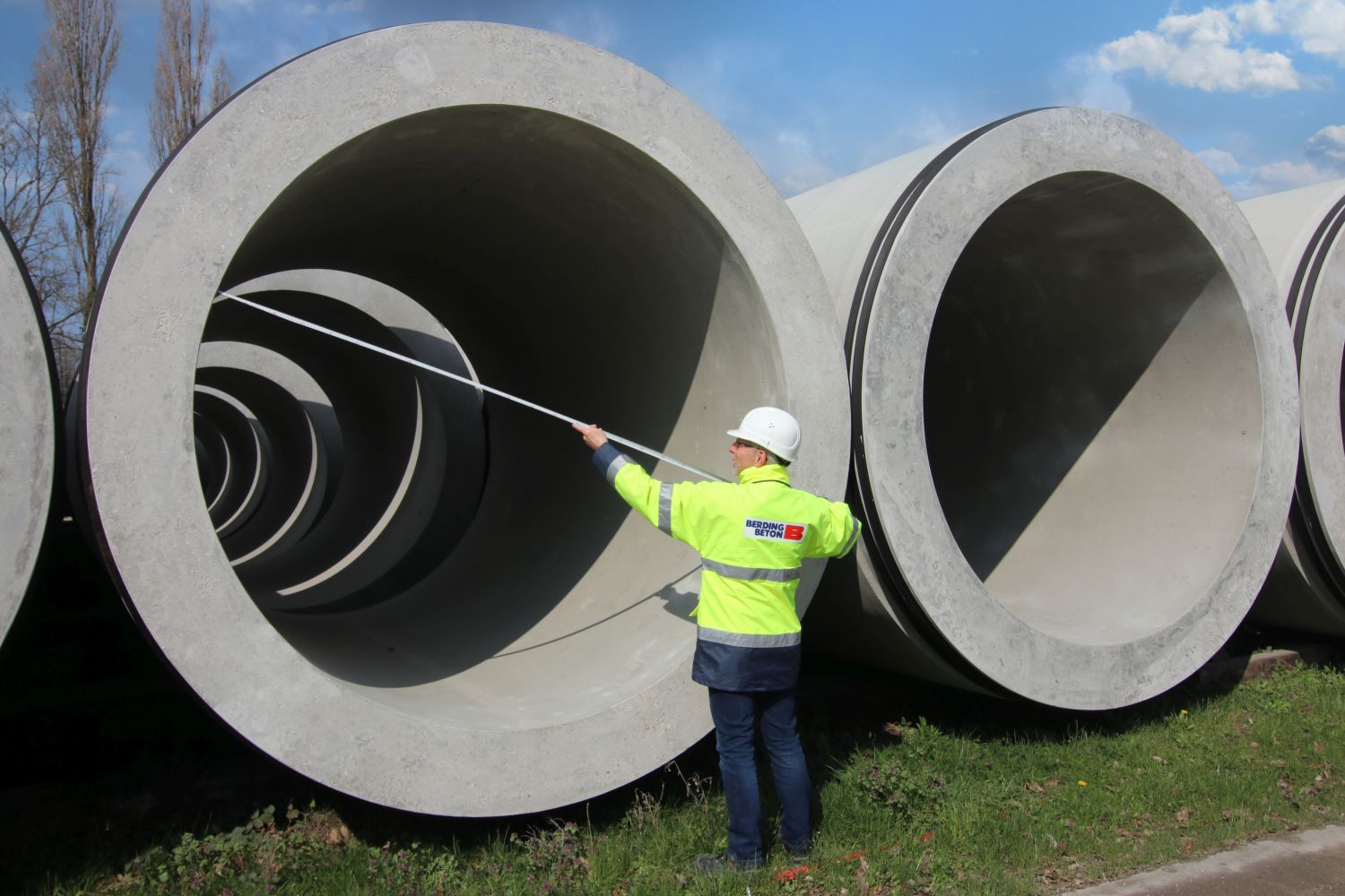 Lieferant für die Stahlbetonvortriebsrohre war die Firma BERDING BETON. Das Unternehmen profitiert von seiner jahrzehntelangen Erfahrung im Bereich der Stahlbetonvortriebsrohre und zeichnet sich durch seine Marktführerschaft als Rohrlieferant aus. Zur Kernkompetenz gehören vor allem die maßgeschneiderten Produkt-Lösungen. Auch bei diesem komplexen Großprojekt wurden die einzubauenden Vortriebsrohre individuell nach den vorgegebenen technischen Vorschriften sowie den kundenspezifischen Wünschen bezüglich Abmessungen und Gewicht gefertigt.