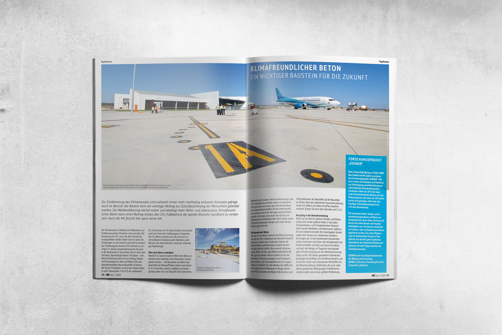 Das Design strahlt durch den ausgewogenen Einsatz von Bild- und Textelementen und durch die klare Strukturierung Ruhe aus und führt den Leser gut durch die Ausgabe. Die neue Typographie sowie der linksbündige Flattersatz sind lesefreundlicher und bieten daher eine bessere Lektüre. Der akzentuierte Einsatz der blauen Firmenfarbe der MC-Bauchemie hebt wichtige Elemente wie Headlines, Zitate und Infoboxen hervor und sorgt damit auch für eine bessere Leserführung.