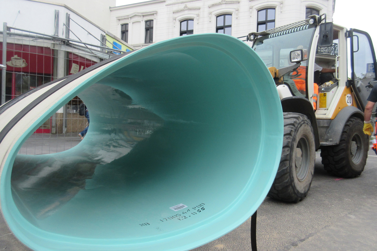Geplant wurde die in grabenloser Bauweise durchgeführte Baumaßnahme vom Ingenieurbüro Rheinplan aus Bonn. Auf der Baustelle im Herzen von Bonn kamen dabei Flowtite GFK-Rohre DN 400 sowie GFK-Sonderprofile AMIREN in der Nennweite DN 700/1050 - geliefert von der Amiantit Germany GmbH, einem Unternehmen der Amiblu Holding - zum Einsatz.