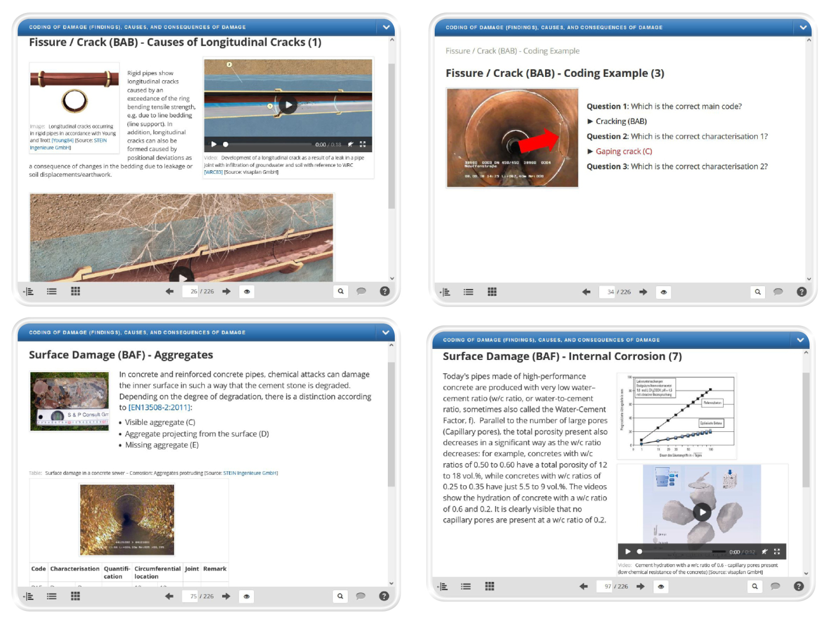 This module builds on the module Application of Coding Systems Using the Example of EN 13508-2 and introduces the process of coding defects for sewers and drains. In great detail, it presents the causes and consequences of defects and, in some cases, the defect mechanisms. It is part of the more extensive online training course BE-07 Investigation and Inspection of Sewers and Pipelines that will launch by the end of 2023.